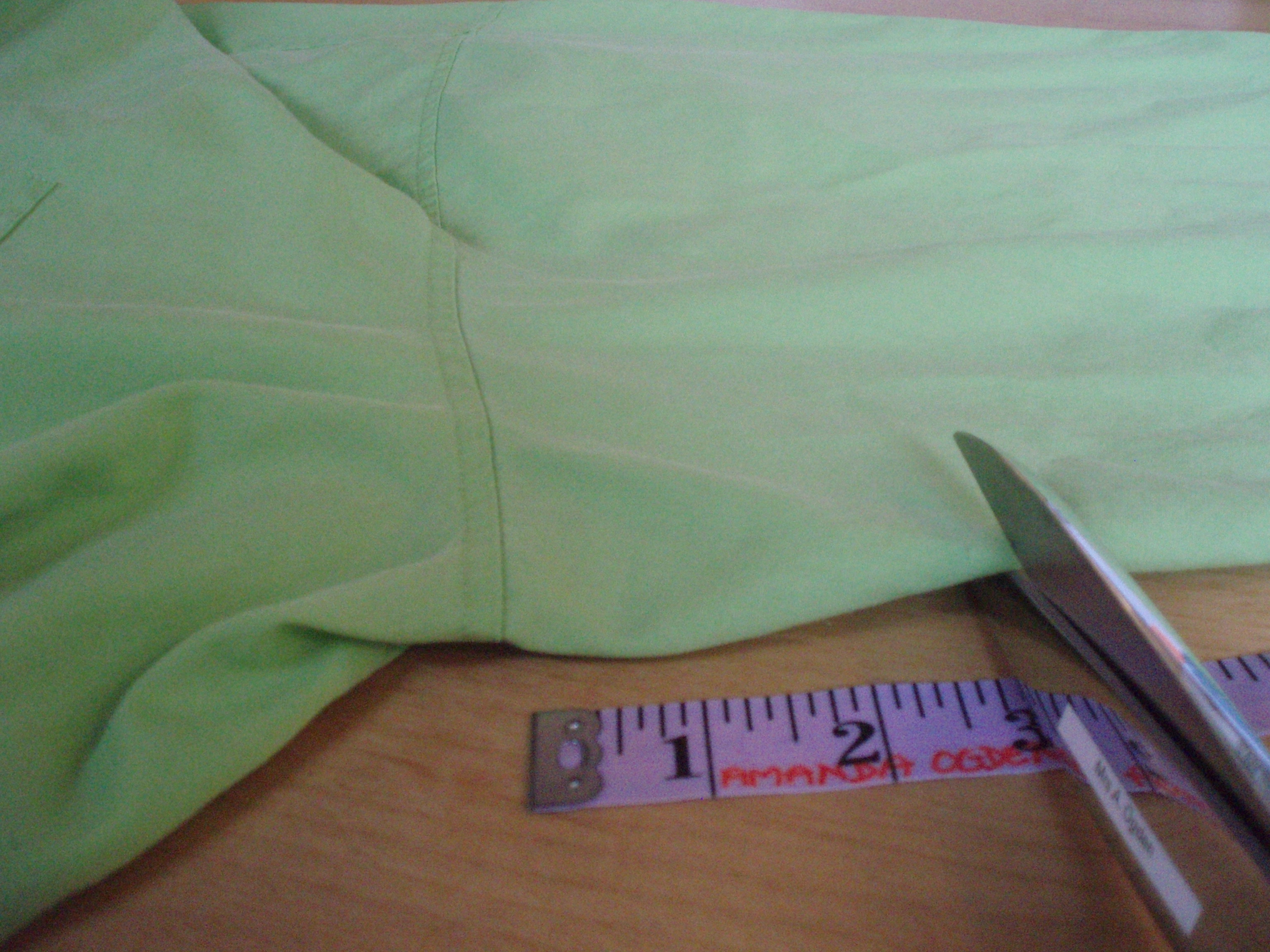 10. Next, cut off the sleeve at the top, 3” (7.5 cm) down from the armhole seam (trust me on this one!)