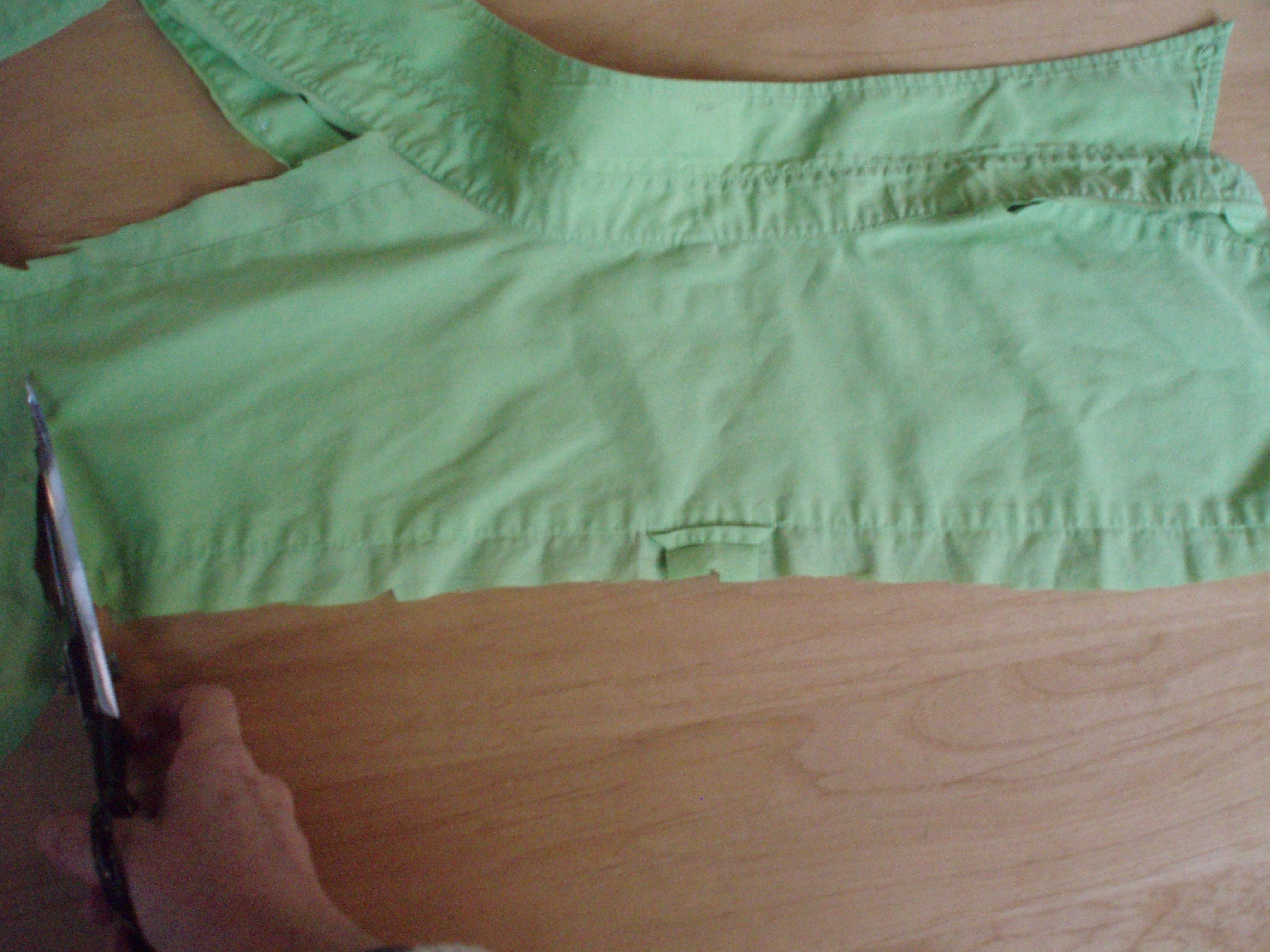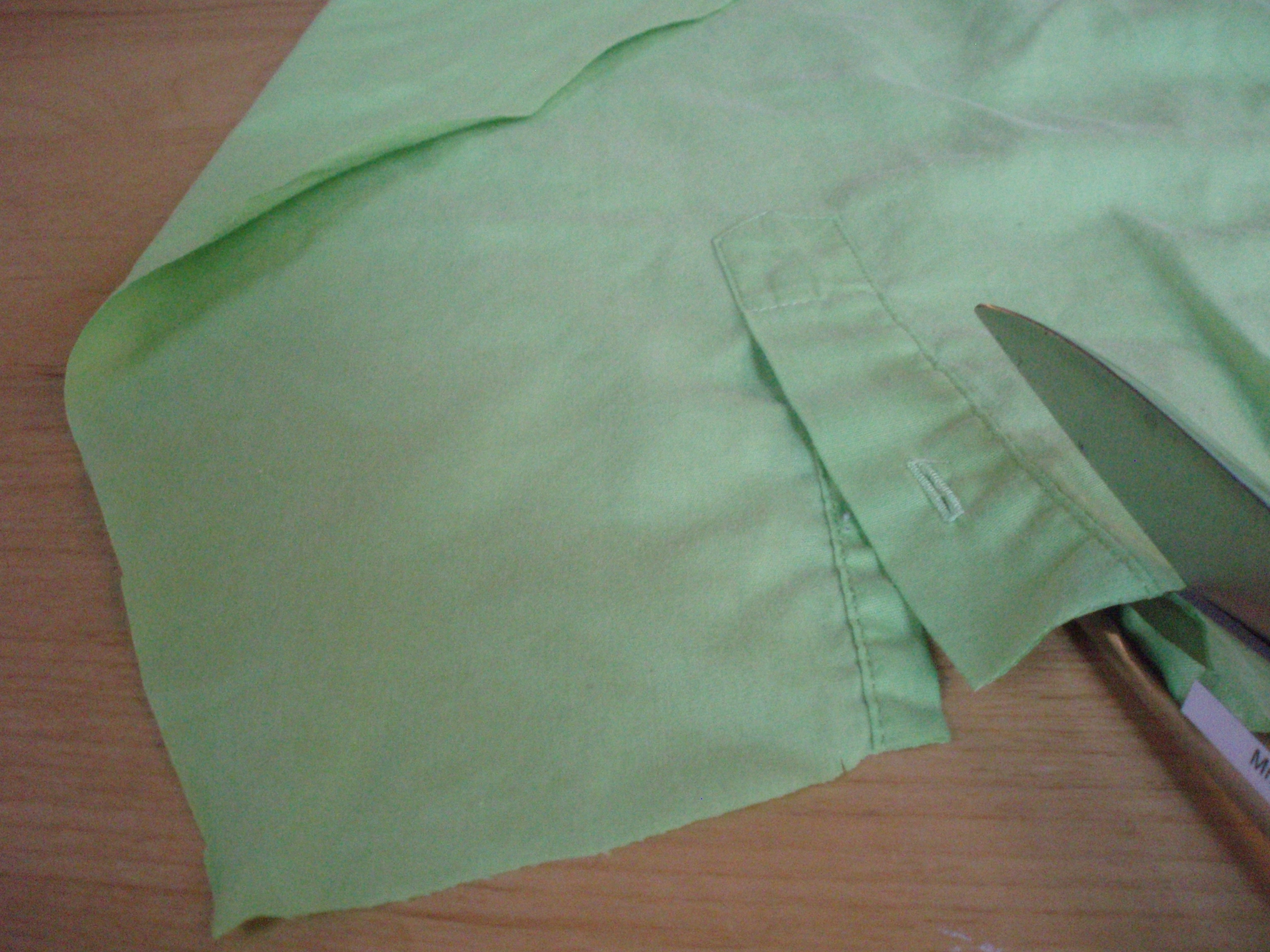 9. Cut off the sleeve just above the cuff.