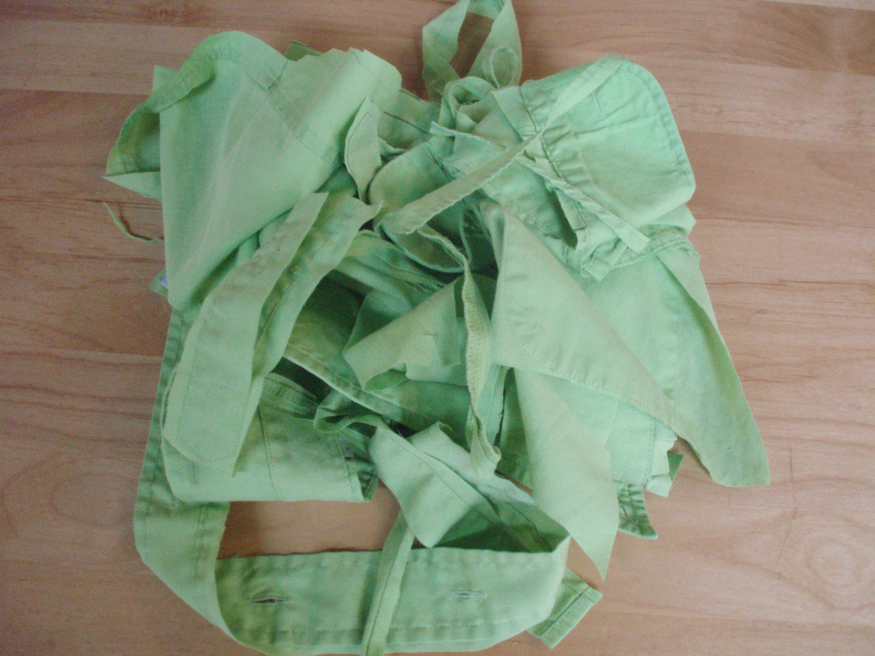 20. Iron all your lovely pieces of fabric. There was more than a square metre of fabric in this shirt; the back alone yielded a piece 32”x 28”/80cm x 70 cm.