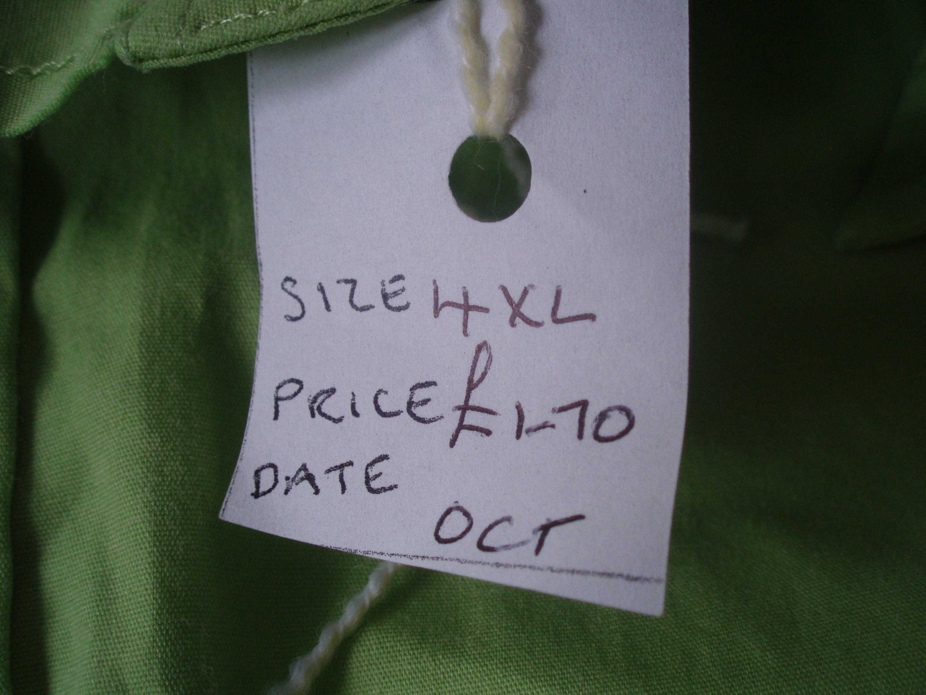 7.Look for the buttons attached to a label in the side seam and buttons at the back and the points of the collar on ‘button-down’ shirts. This shirt yielded 13 larger and 6 smaller buttons.