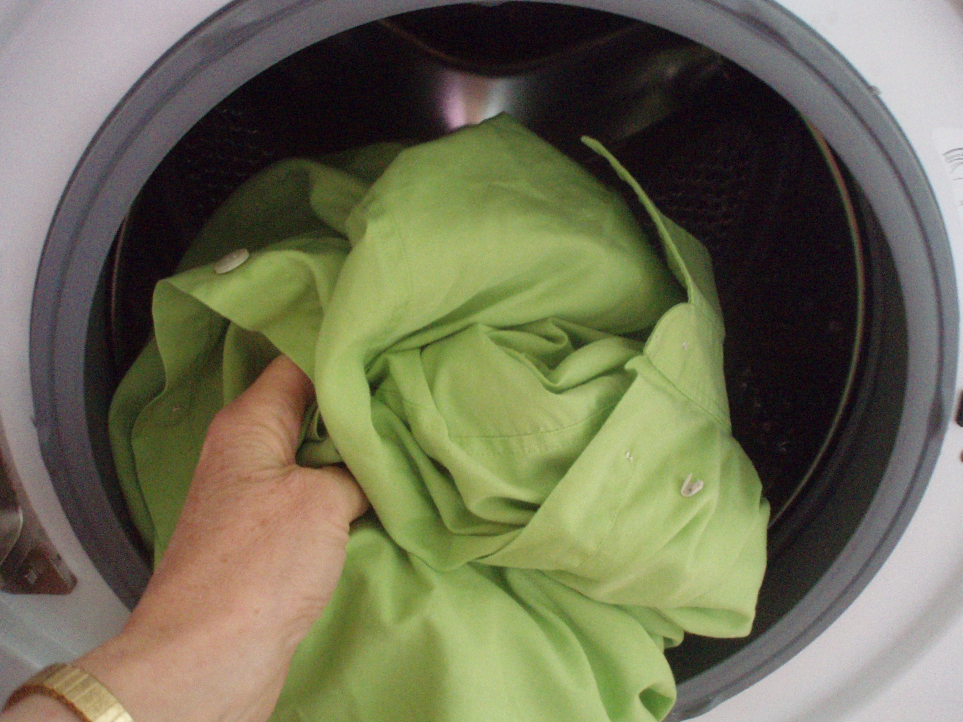 5. Wash the shirt carefully, on its own, so you can check that the colour doesn’t run. If you put a scrap of white fabric in the washing machine with it you will be able to check if it is colourfast. Dry the shirt. Don’t go near it until it is pristine and sweet-smelling!