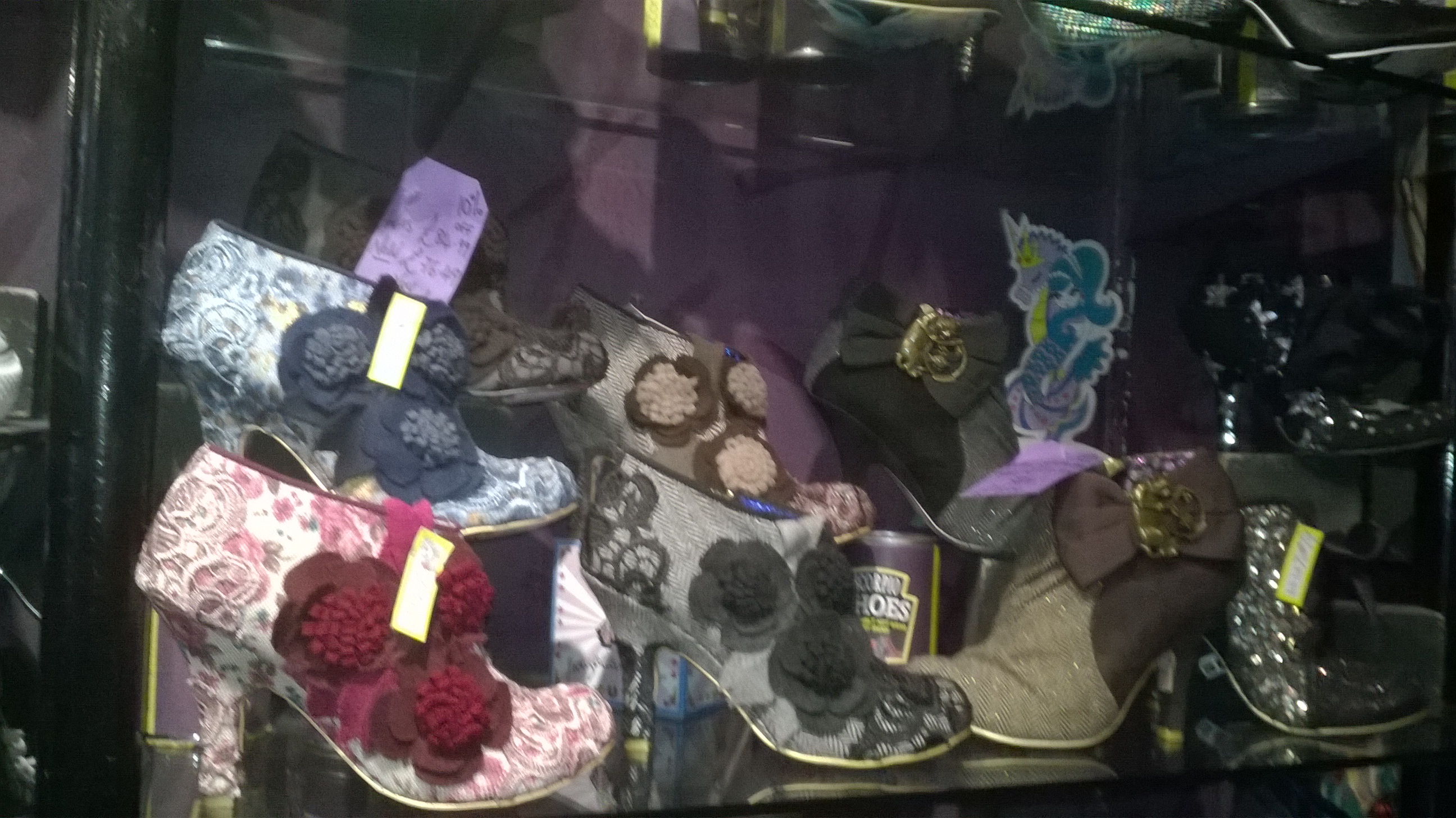 The day before (on Christmas Eve), we made a visit to this unusual shoe shop (Scorpio), which is on Saddler Street, just up from the market square. It was shoes for young men that we were after, but just have a look at these fabulous creations!