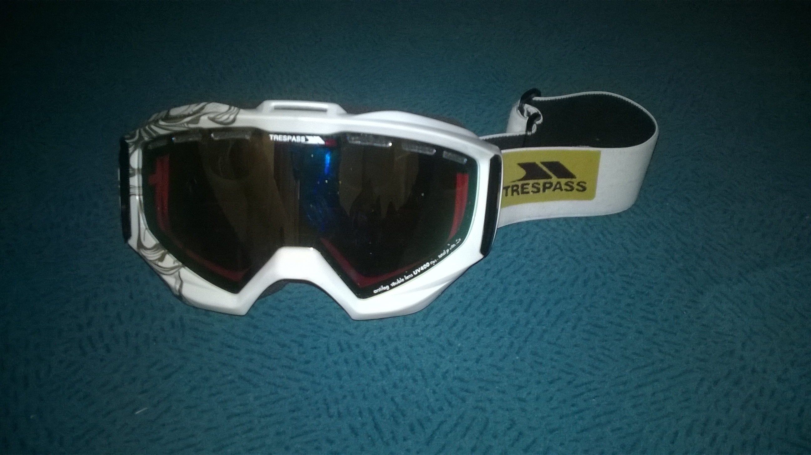 2. Goggles: These Trespass goggles are perfect (www.trespass.com). I used to carry around grey lens goggles for bright days and orange lens ones for dull days, but these reflective yellowish lenses do both jobs. The strap is adjustable and just extends enough to stretch over the helmet. The fabric lining the edges on the inside is soft and doesn’t irritate the skin.