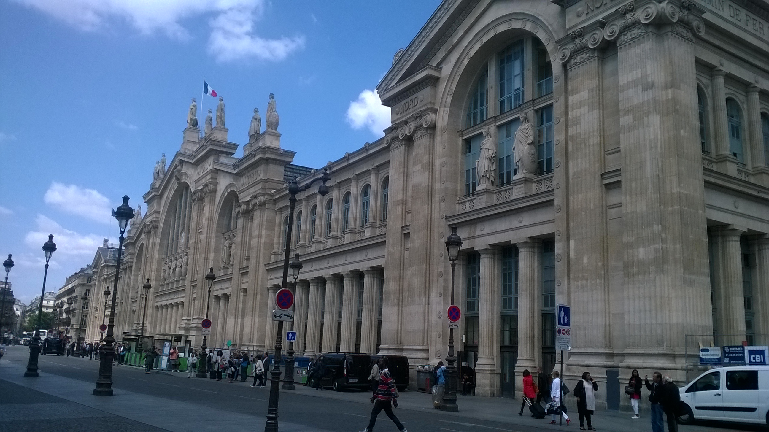It worked beautifully, and we traversed the Channel Tunnel with minimum disruption and inconvenience (unlike my previous experience in a coach, where I felt like a sardine). Arrival at the Gard du Nord in beautiful sunshine allowed us to enjoy the decorative grandeur of the station architecture against the blue sky: