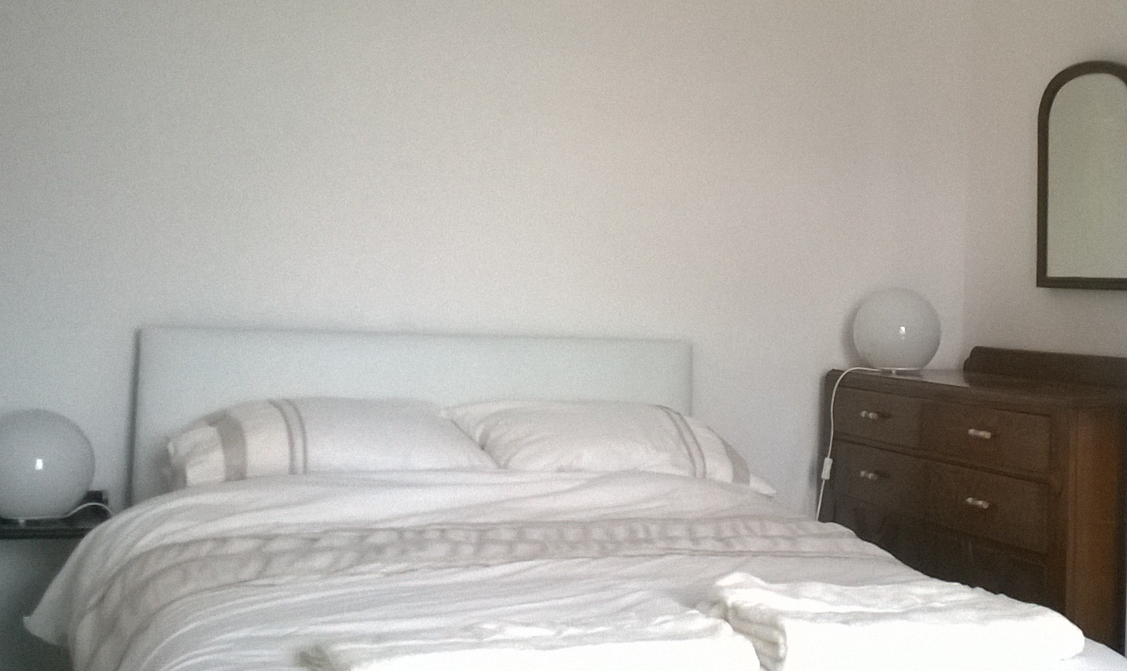 And there’s a sitting room with comfortable seating which includes a rocking chair and a reclining chair as well as the sofa (just pictured). There are jig-saw puzzles and games for guests who come for longer stays. The house is painted white throughout.There are three comfortable bedrooms upstairs – and of course there are hand-made quilts at the end of each bed!