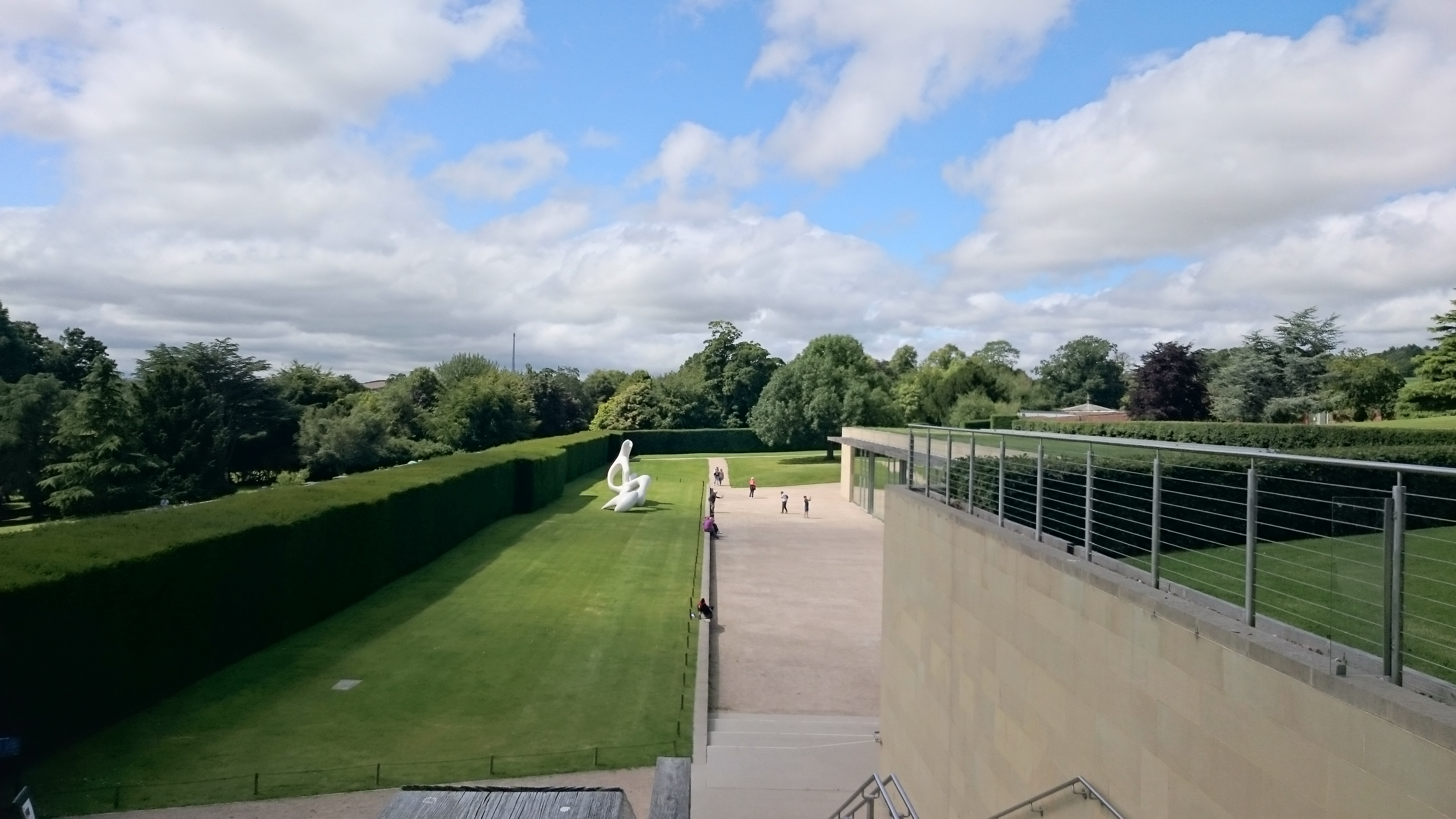 Today’s journey included a brief visit to the Yorkshire Sculpture Park. This was a somewhat nostalgic visit, as many years ago I drove through it every day of my teacher training course when we were being taught (as opposed to being on placement in a school) at Bretton Hall, the mansion at the centre of the park. It was such a privilege to drive past the big outdoor sculptures though the beautiful landscaped hills and gardens. I particularly remember large standing figures (‘Molecule Man’ by Jonathan Borofsky, I believe).