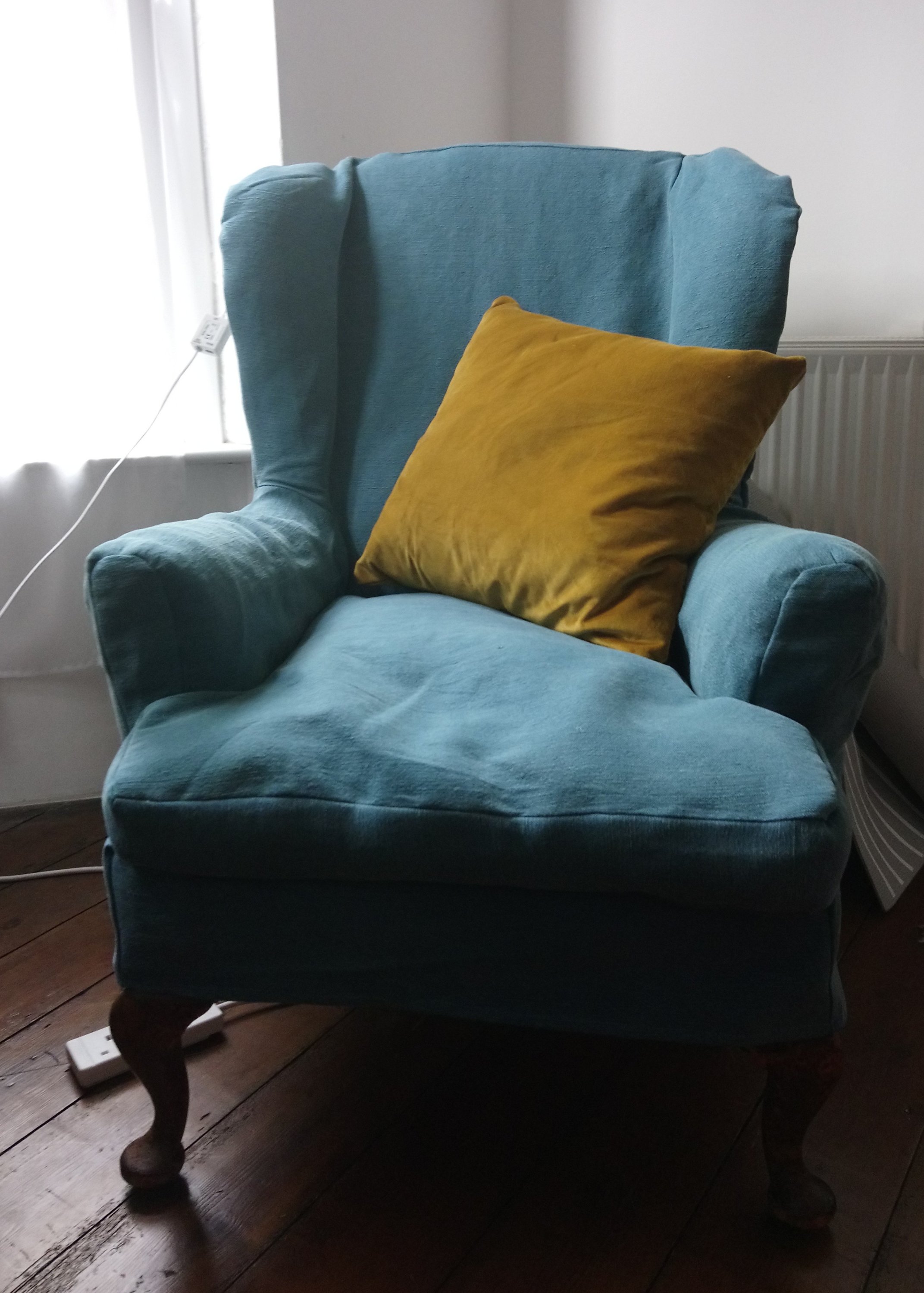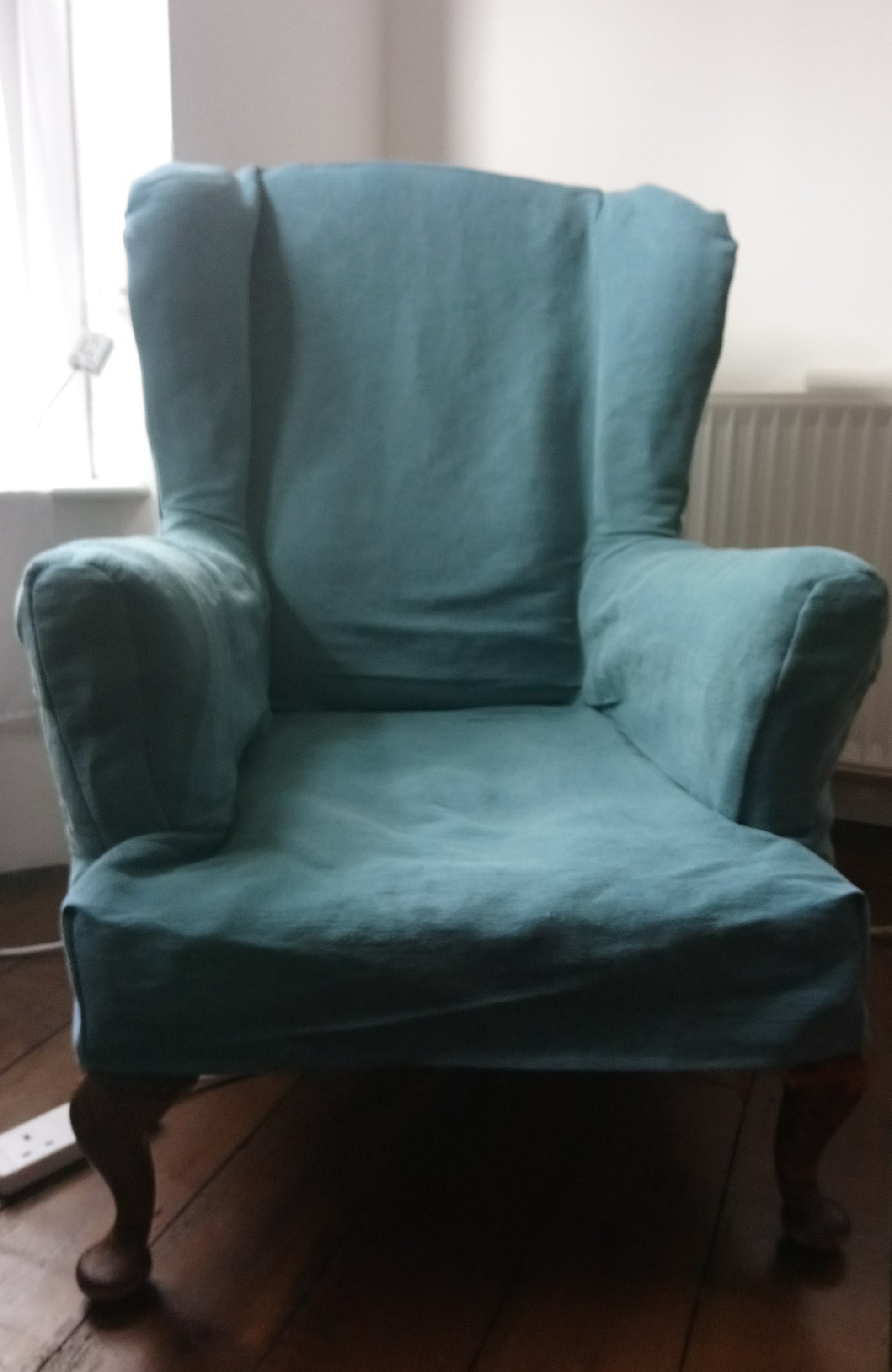 My daughter and son-in-law have moved to the South-East of England and last weekend I went down by train to visit. I had made a promise to make a new slip-cover for their wing chair while I was there.
