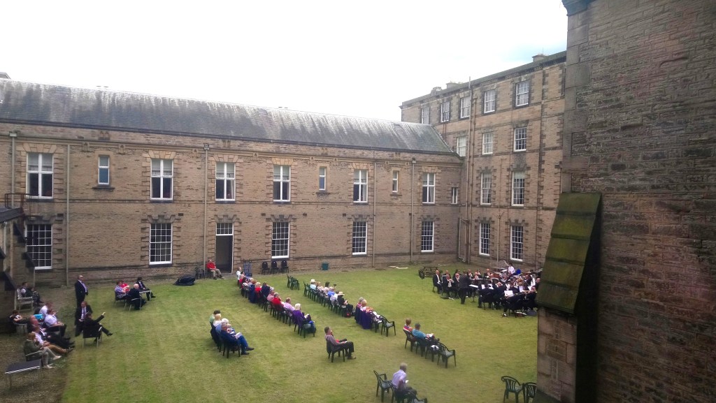 The day offers six hours of teaching, with a break for morning coffee and a cup of tea in the afternoon. At lunchtime, we took our sandwiches and sat outside in the large courtyard below my studio (which is sometimes used for concerts, as seen in the photo).