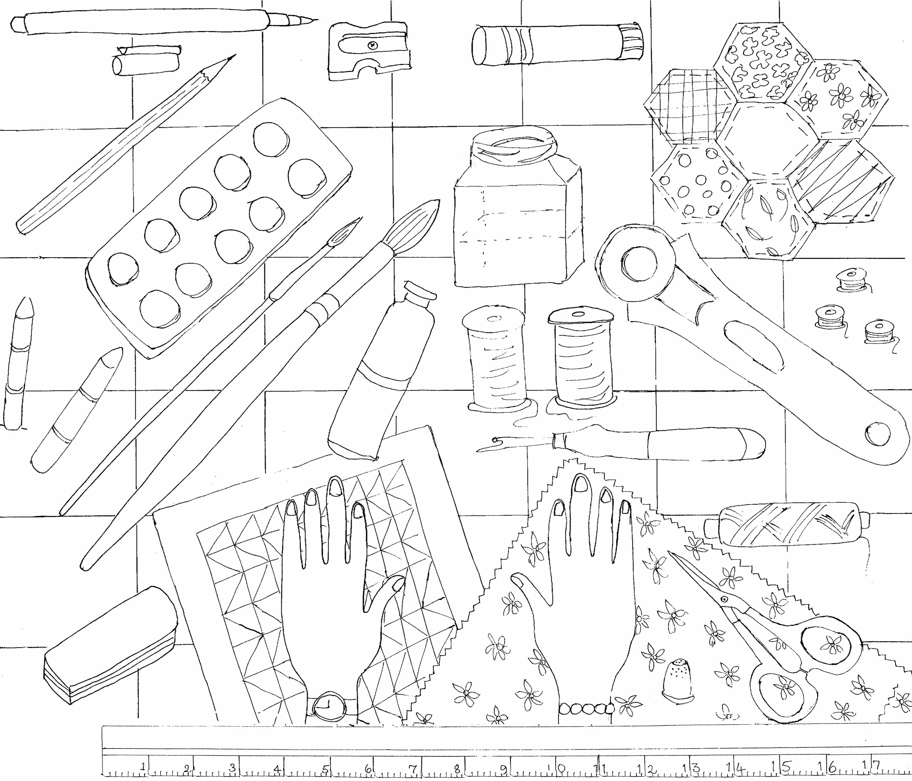 This skirt was made with a woven cotton. Another skirt, which I can wear all year round, is in a heavier weight denim fabric. The design is called ‘The work of my hands’ and it was based on a drawing of what was lying on my worktable at the time.