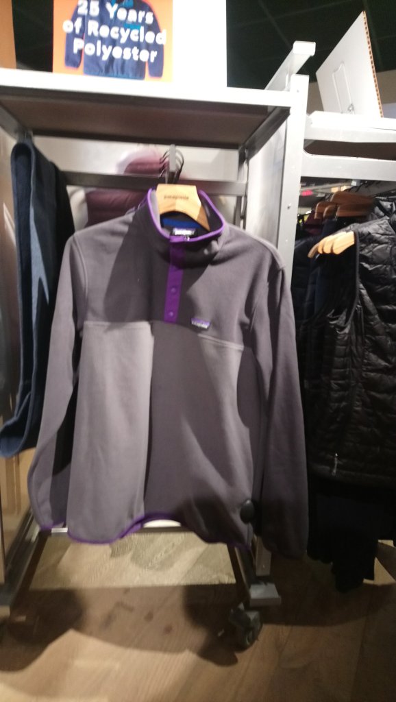 Nearby, were jackets and fleeces by another brand known for their commitment to ‘reduce, re-use, re-cycle’: ‘Patagonia’.