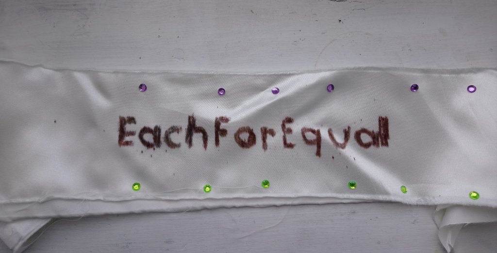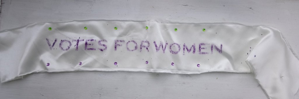 So we made sashes, using a variety of slogans, including some of the original suffragette ones.