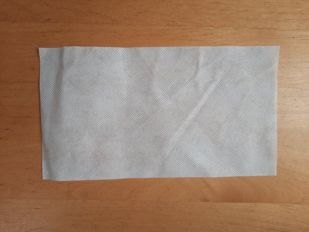 I had some non-woven fabric in the drawer and cut a piece 8 x 4″ to insert into the mask.