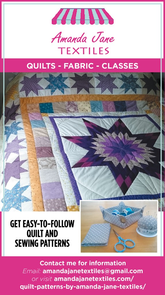 Of course, there is also the more old-fashioned way of publicising a small business – word of mouth – so if you know someone who might enjoy reading this blog, looking at the YouTube videos or learning from the website tutorials, please will you tell them about Amanda Jane Textiles? Thank you very much!