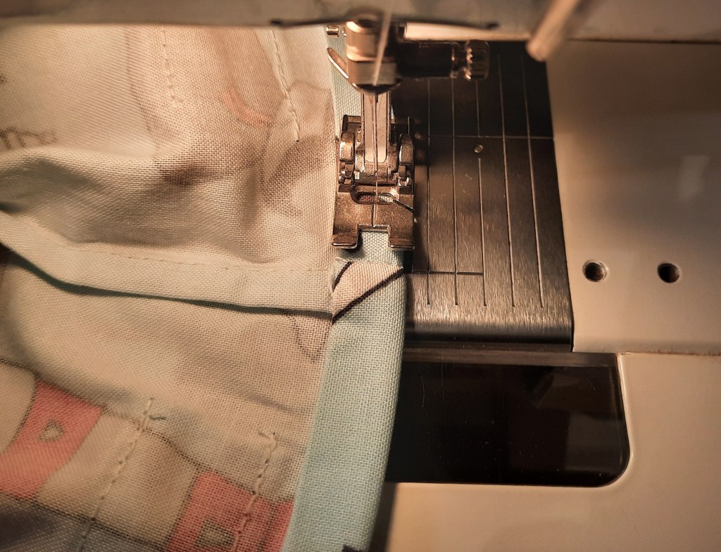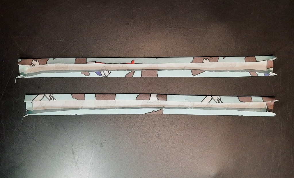 Fold under the short ends of the casings ¼” (6mm)and press. Then fold in the long sides ¼” (6mm) and press.