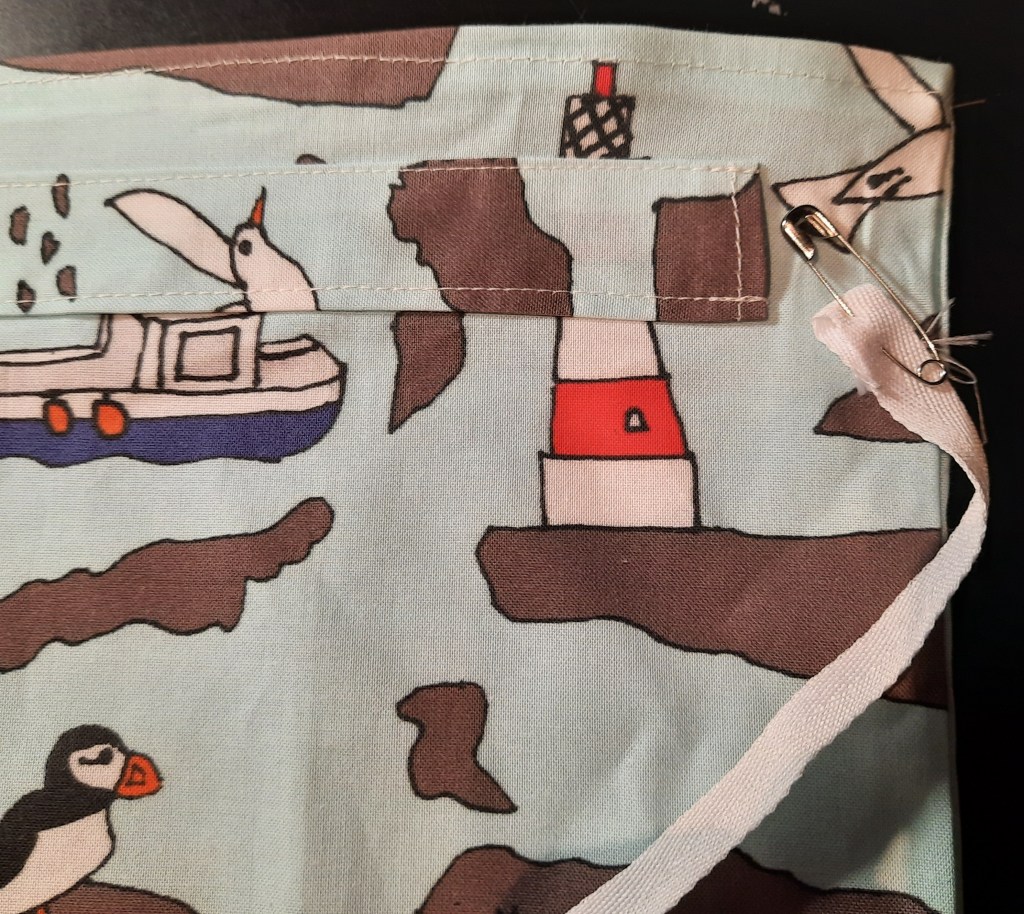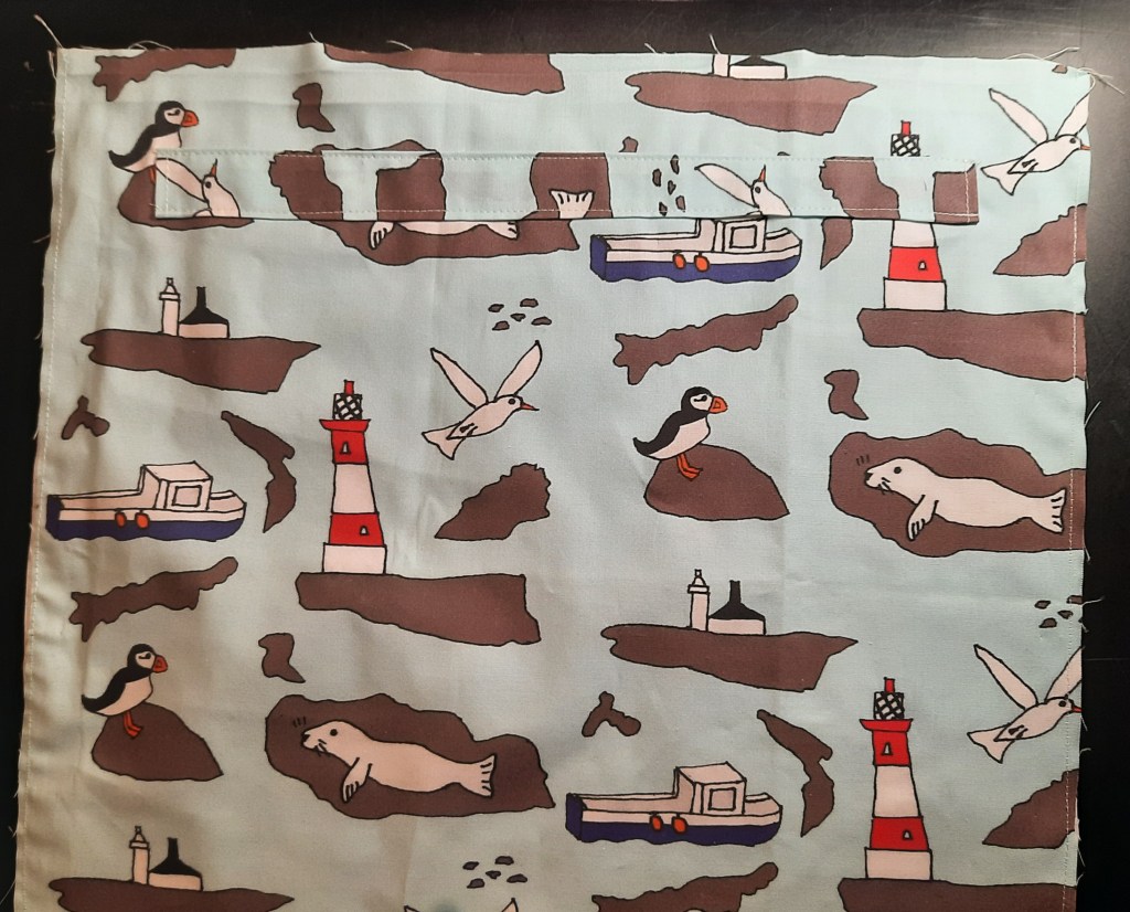 To make the bag you need ½ yard (50cm) of fabric 42″ (107cm) wide. The fabric used here is my ‘Farne Islands’ design on Petal Cotton. One yard of fabric will make two bags. (You can find the fabric here)