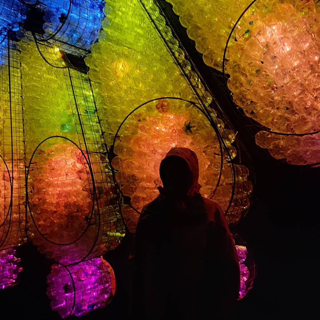 A highlight of the event for me was seeing once again Mick Stephenson’s ‘Rose Window’ sculpture, which I have loved since I first saw it at Lumiere 2015 – and blogged about it here. It looked splendid against the games court walls at Ushaw: