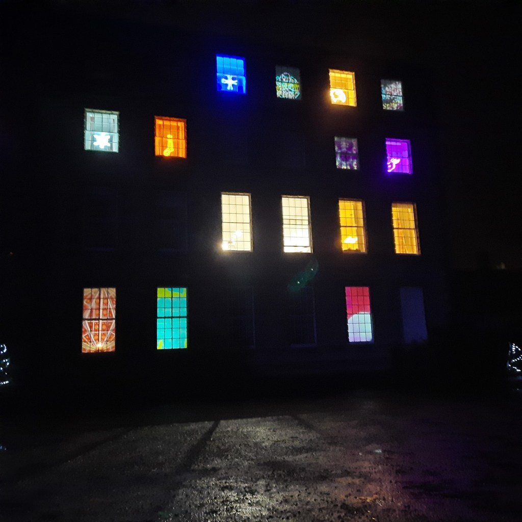 In the end, the planned indoor Christmas Tree Festival at Ushaw could not take place because of Covid-19 restrictions (we emerged from the second lockdown into Tier 3). However, Ushaw was able to go ahead with ‘Illuminating Ushaw’ which all took place outside. I went to the opening night and thoroughly enjoyed it, despite some December rain. The front of the main building was lit up like an Advent calendar: