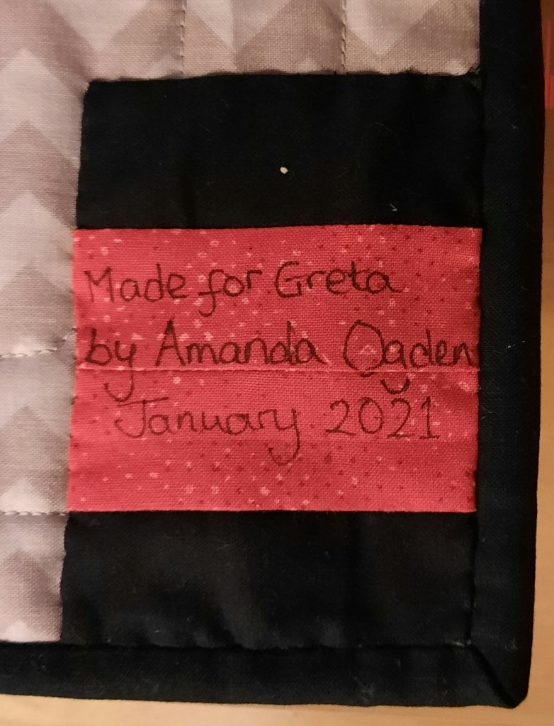 Thankfully the quilt has arrived at its destimation and I hope that my partner will enjoy having it. I included a simple label on the back.