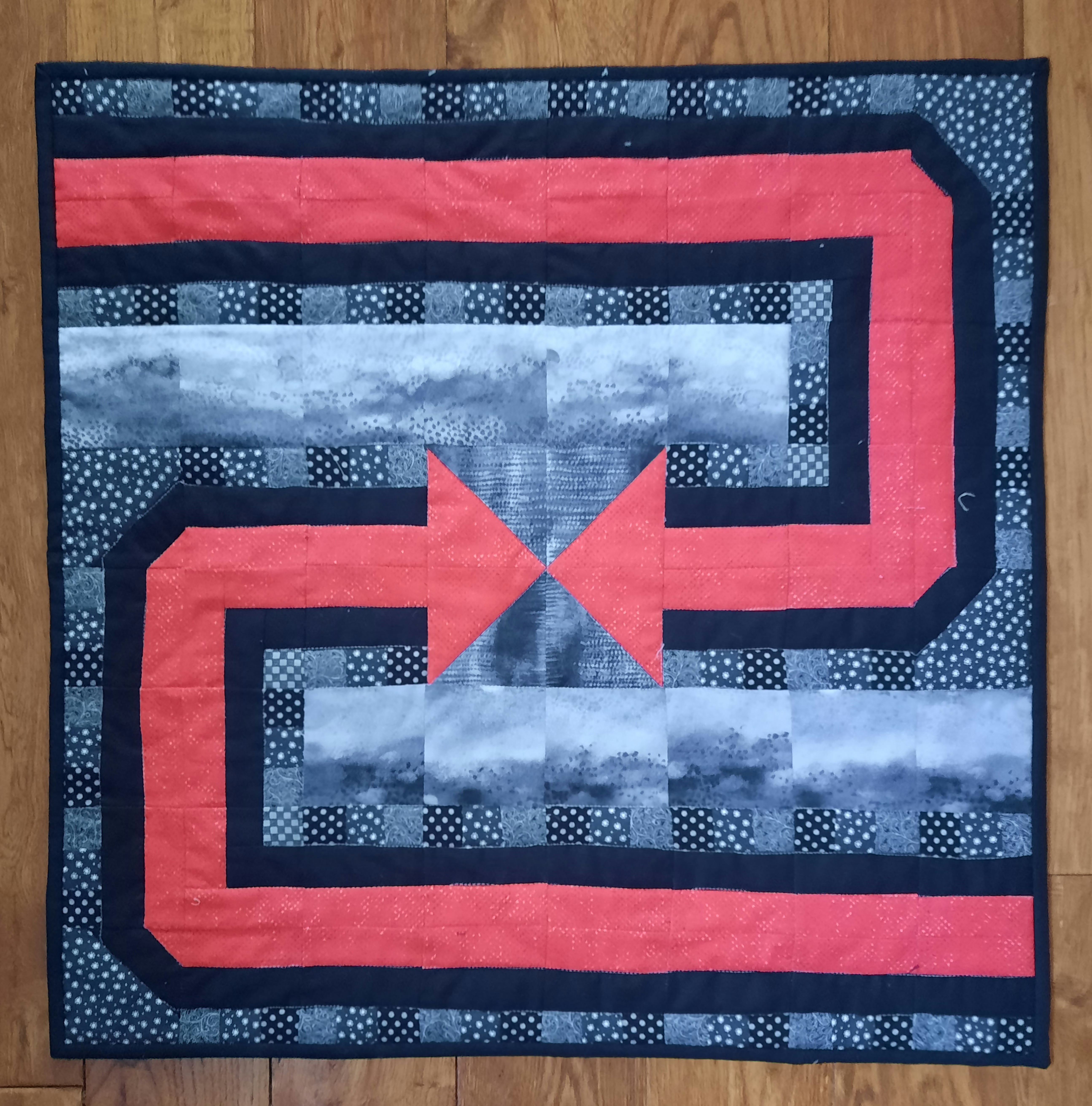 As part of the swop, you have some information from the MQG about your partner’s likes and dislikes and my partner is on Instagram (@gak645) so I was able to see some of her work. Nevertheless, I felt very nervous when the moment came for me to design a quilt for her. I decided on a palette of grey prints, black solid and a strong red solid for contrast.