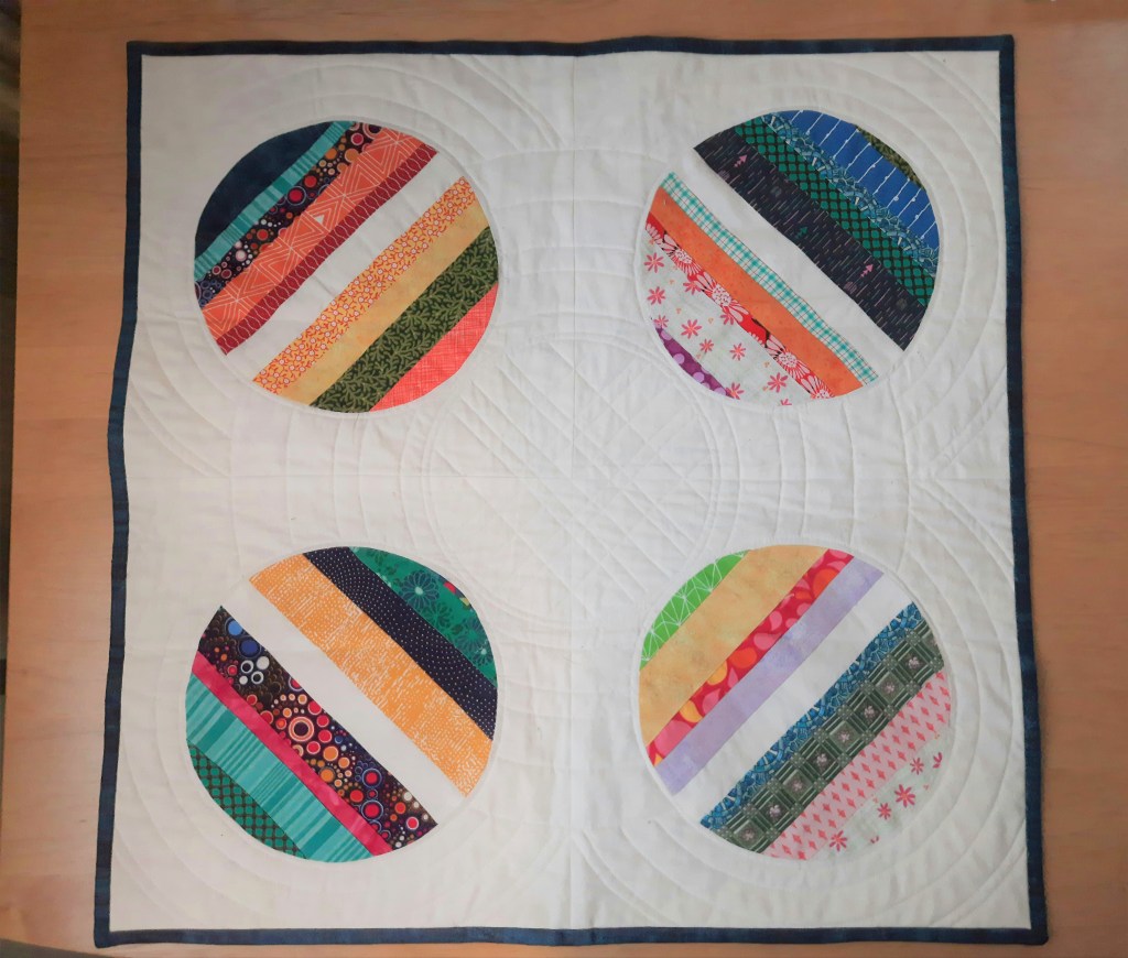 Here’s a closer look at the quilt. I love the mix of bright colours in the circles and the detail of the quilting.
