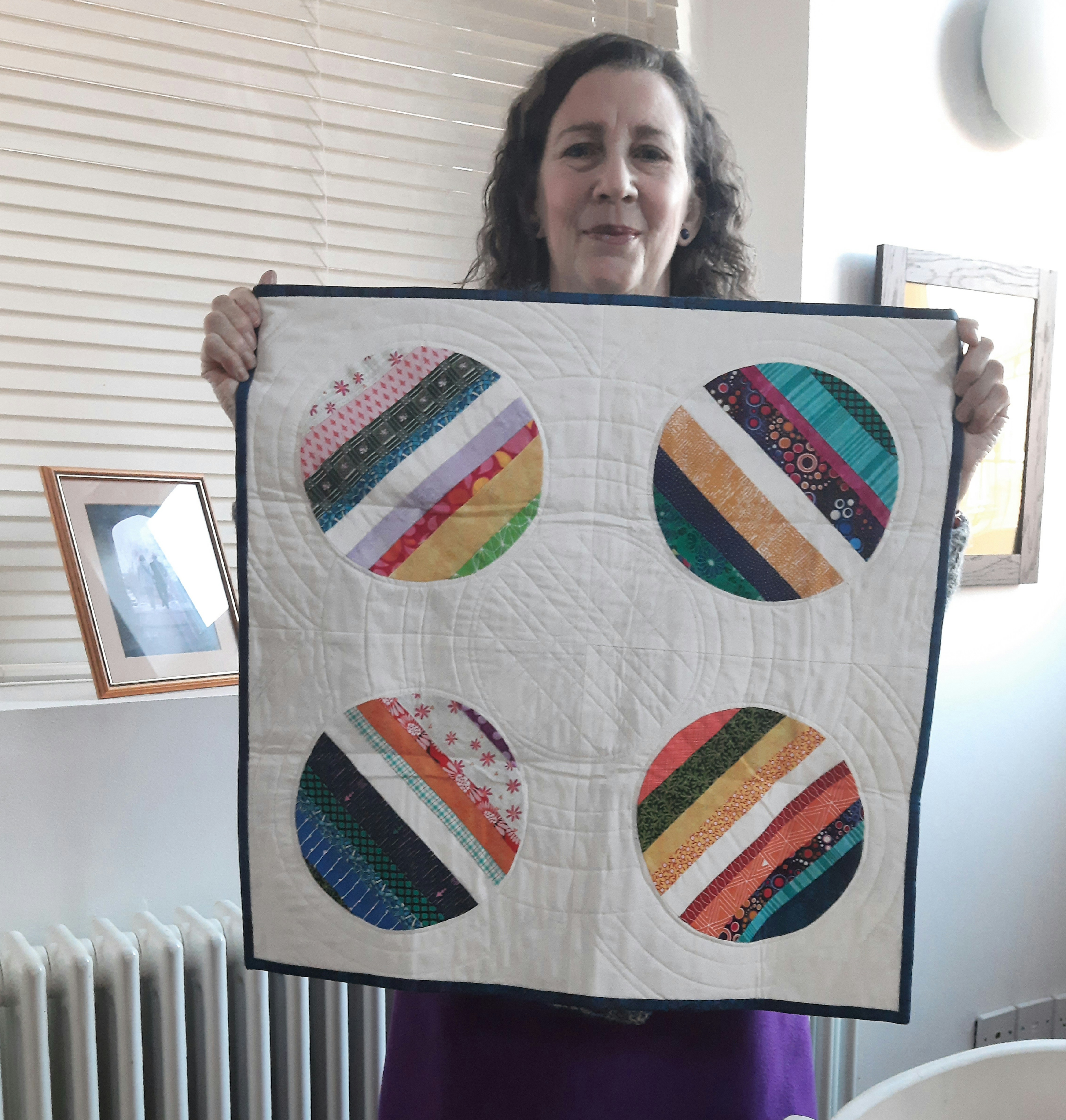 I wanted the quilt to represent a ‘meeting point’. In this troubled world, in the middle of a pandemic, we could reach out and meet each other across two continents, not just ‘virtually’, but with a physical object, made in friendship. Here is the quilt I made: