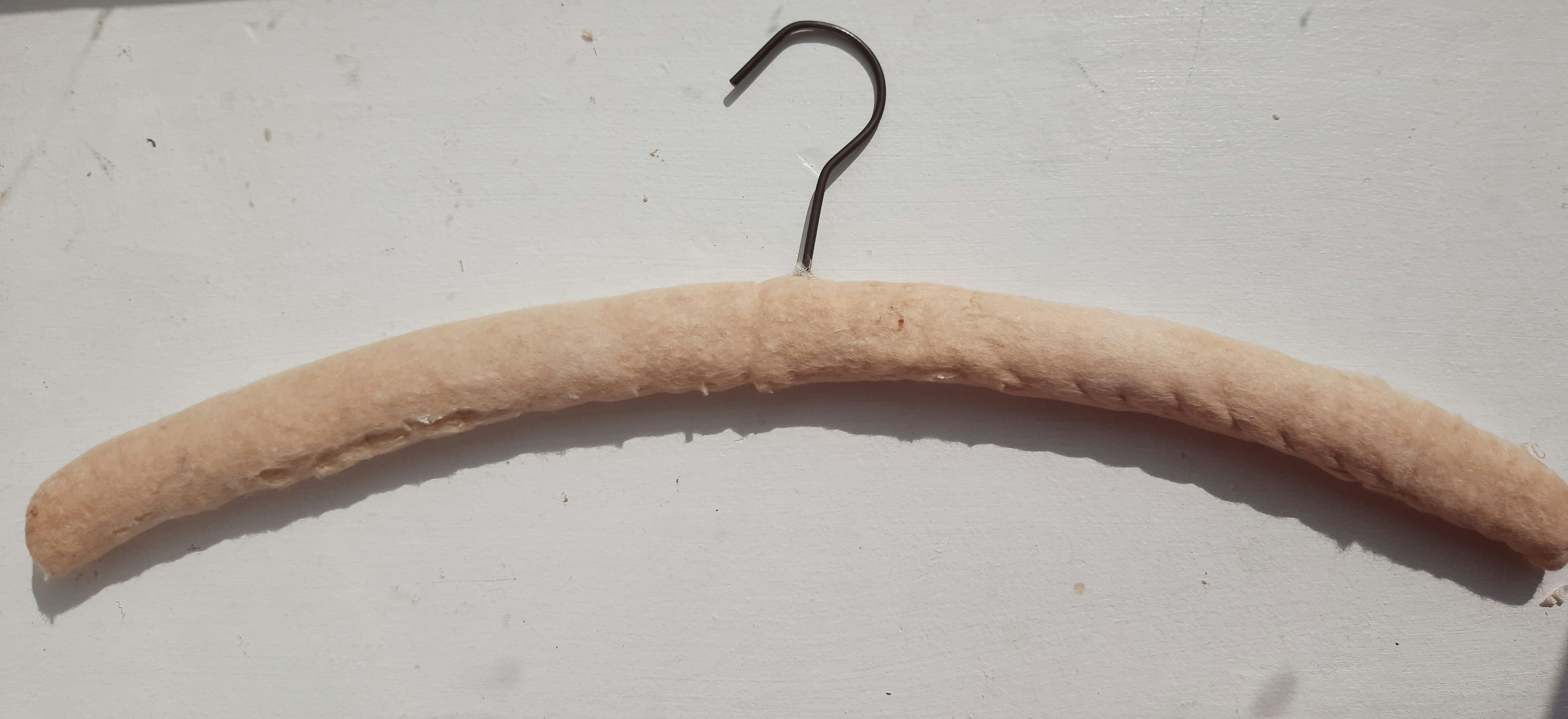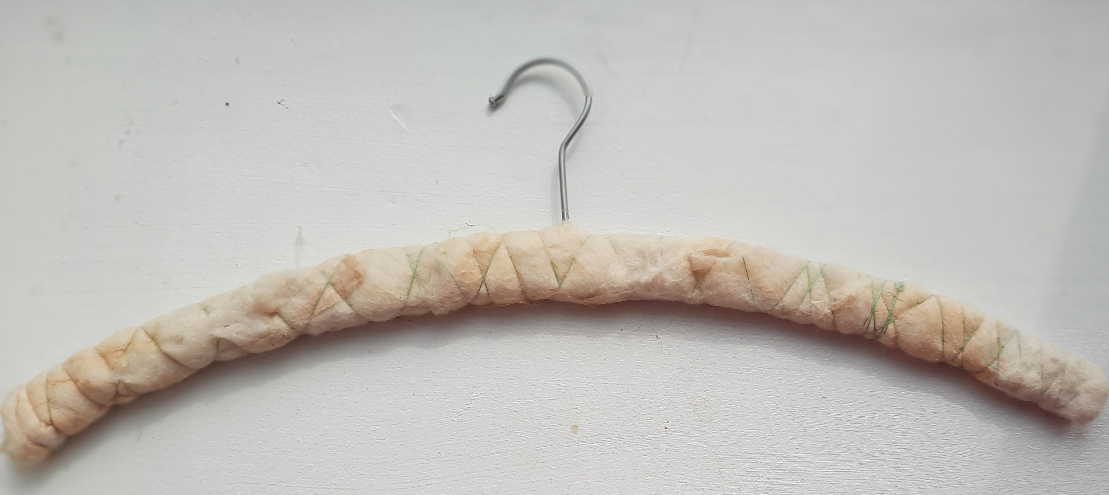 One hanger had a rather more solid layer of cotton wadding under the outer fabric. The wadding was held in place by overcast stitches.