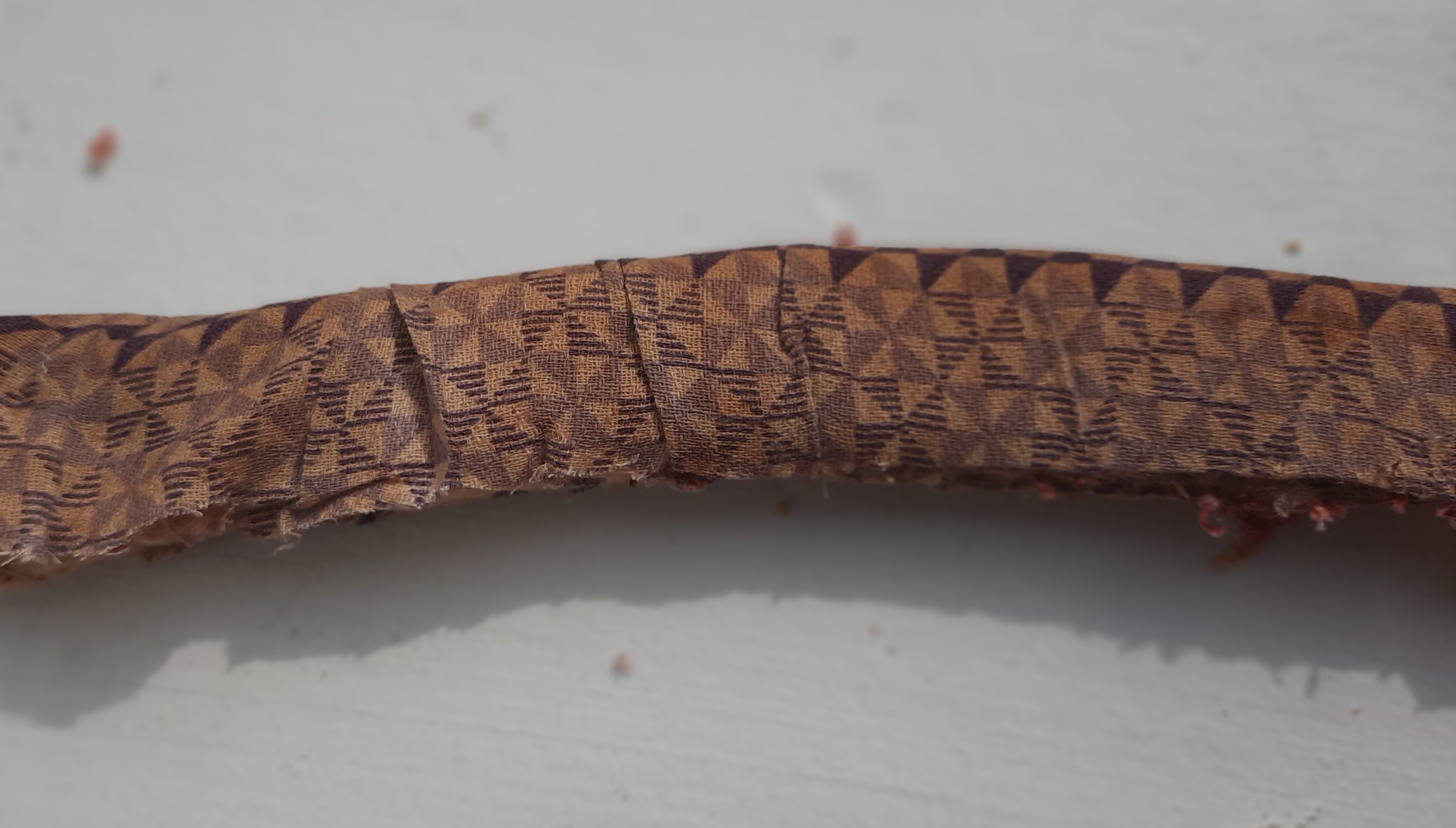 Underneath the top layer was a strip of soft thick fabric, wound round and stitched.