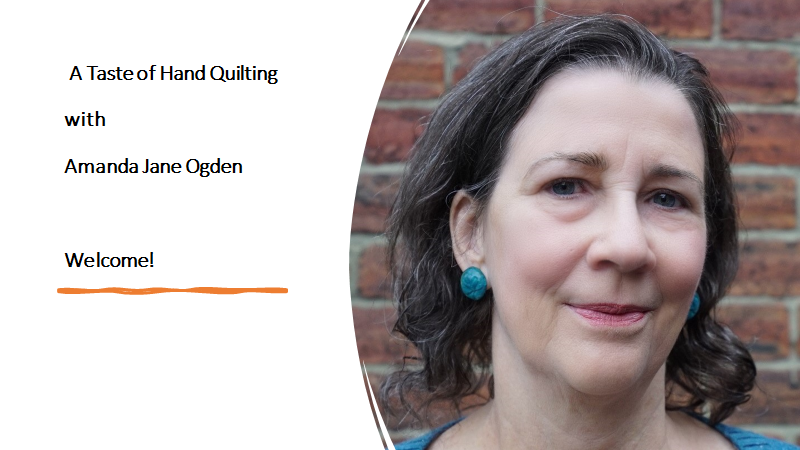 Due to pandemic restrictions, it was decided to hold the workshops online. This called for ingenuity and new ways of working for me as a teacher, but it also allowed for participants to join in from different places in the UK – and from elsewhere in the world – in a practical workshop to make hand-quilted blocks.