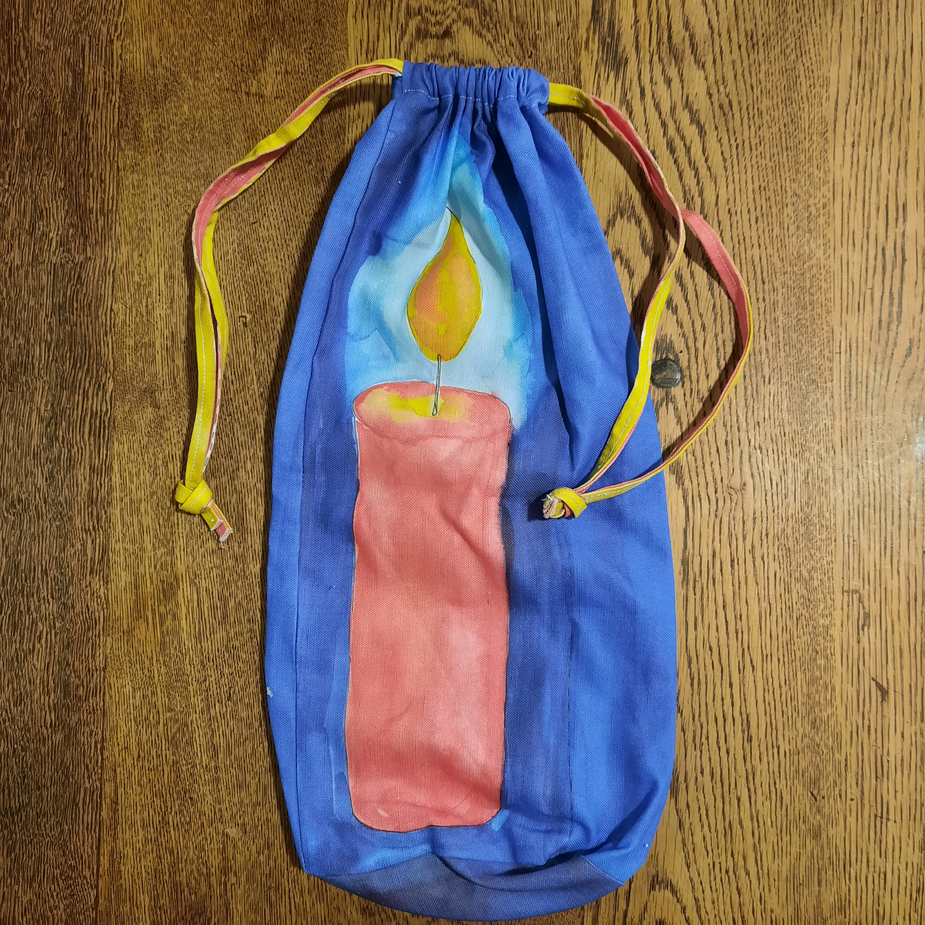 There are also two do-it-yourself Christmas items available from my design studio on Spoonflower. Firstly, there is a drawstring bottle bag featuring a hand-painted candle design. Find it here