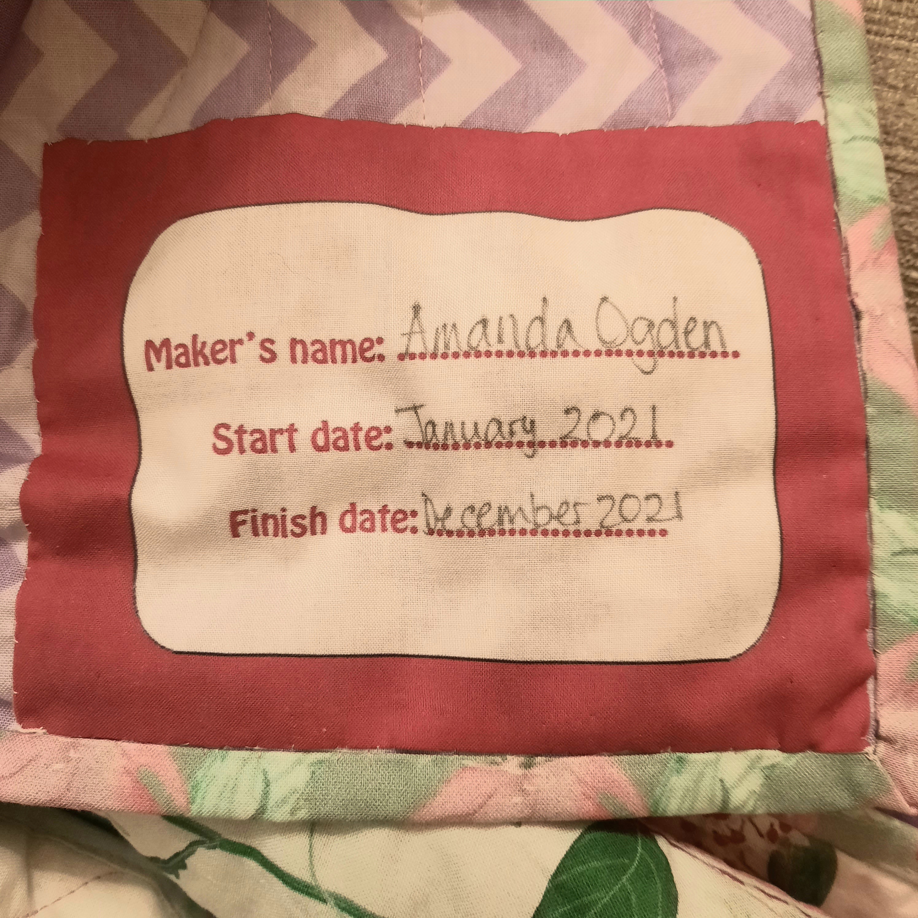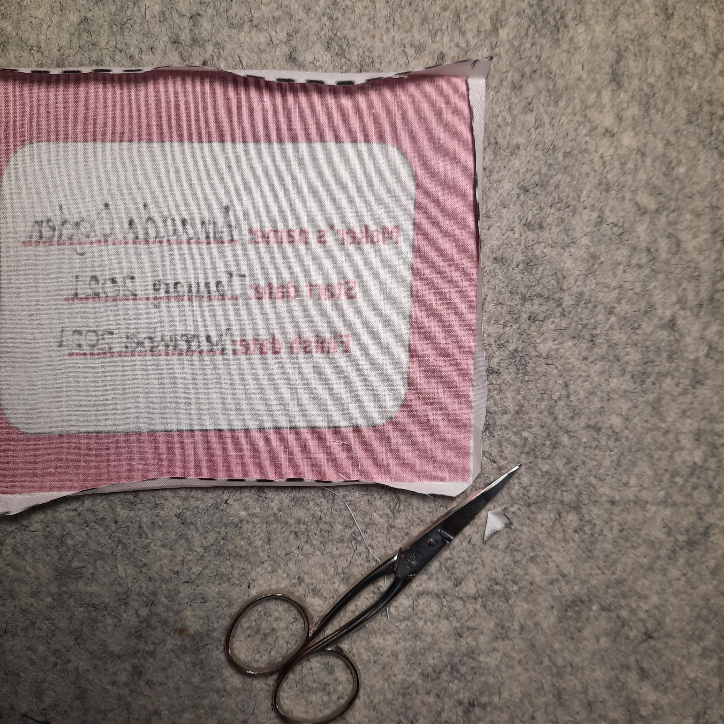 The quilt you make might also last 300 years! A lot of work goes into a quilt, so it makes sense to add your name and the date to the back. You might also choose to include information about the occasion for which the quilt was made: a new baby, a marriage, a significant birthday, for example. So, a label should be added to the ‘Summer Bouquets’ quilt.