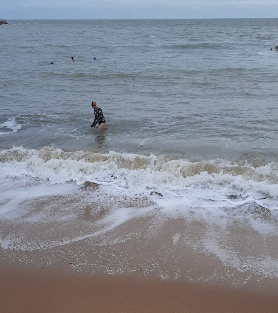 However, I have recently been testing the ‘Hair Scrunchie for Swimming’ during December and January! I love wild swimming, but it definitely takes time to acclimatise to the very cold water in the winter sea and to learn the correct ways of getting warm again afterwards. It’s important to be safe in the water and ideally swim with others. There is lots of helpful information available about this, for example an excellent article on wild swimming from Countryfile here. I’m grateful for my ‘rash vest’ plus my swim gloves and thermal swim hat. You can’t see it, but the scrunchie is in use, under the hat!