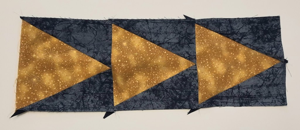 6 The set of three should look like the photo below. You should have four pieces like this. Press well and keep them in a safe place. Join me at the beginning of March for the next star block.