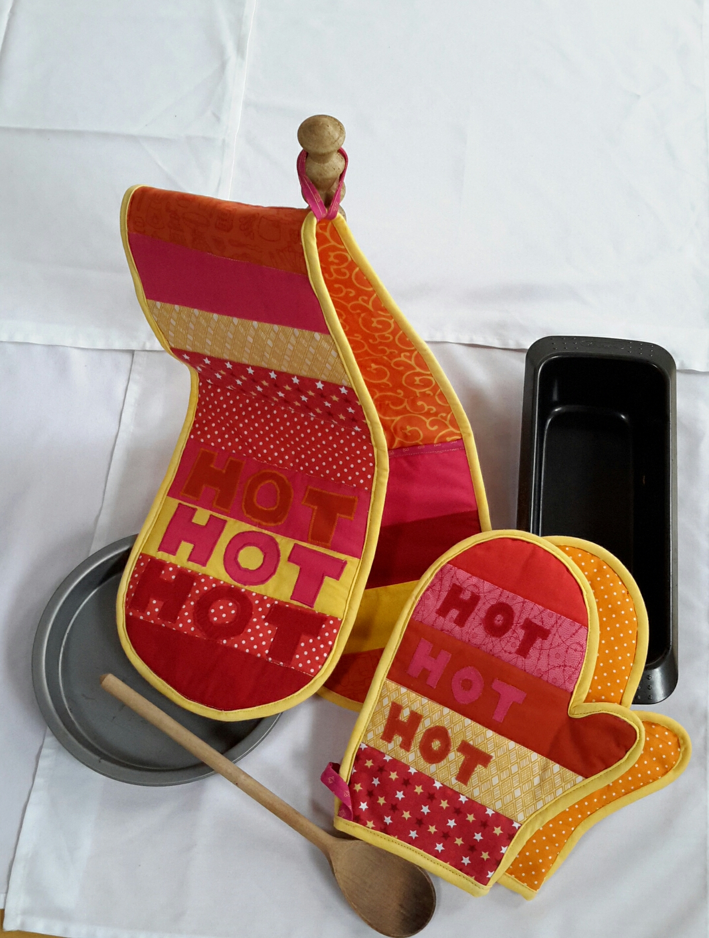 They are certainly cheerful and bright. But added to that, they carry their own safety message: use these for holding hot things. It is recommended to use specialist wadding inside to make them genuinely safe to use; no burnt fingers here!