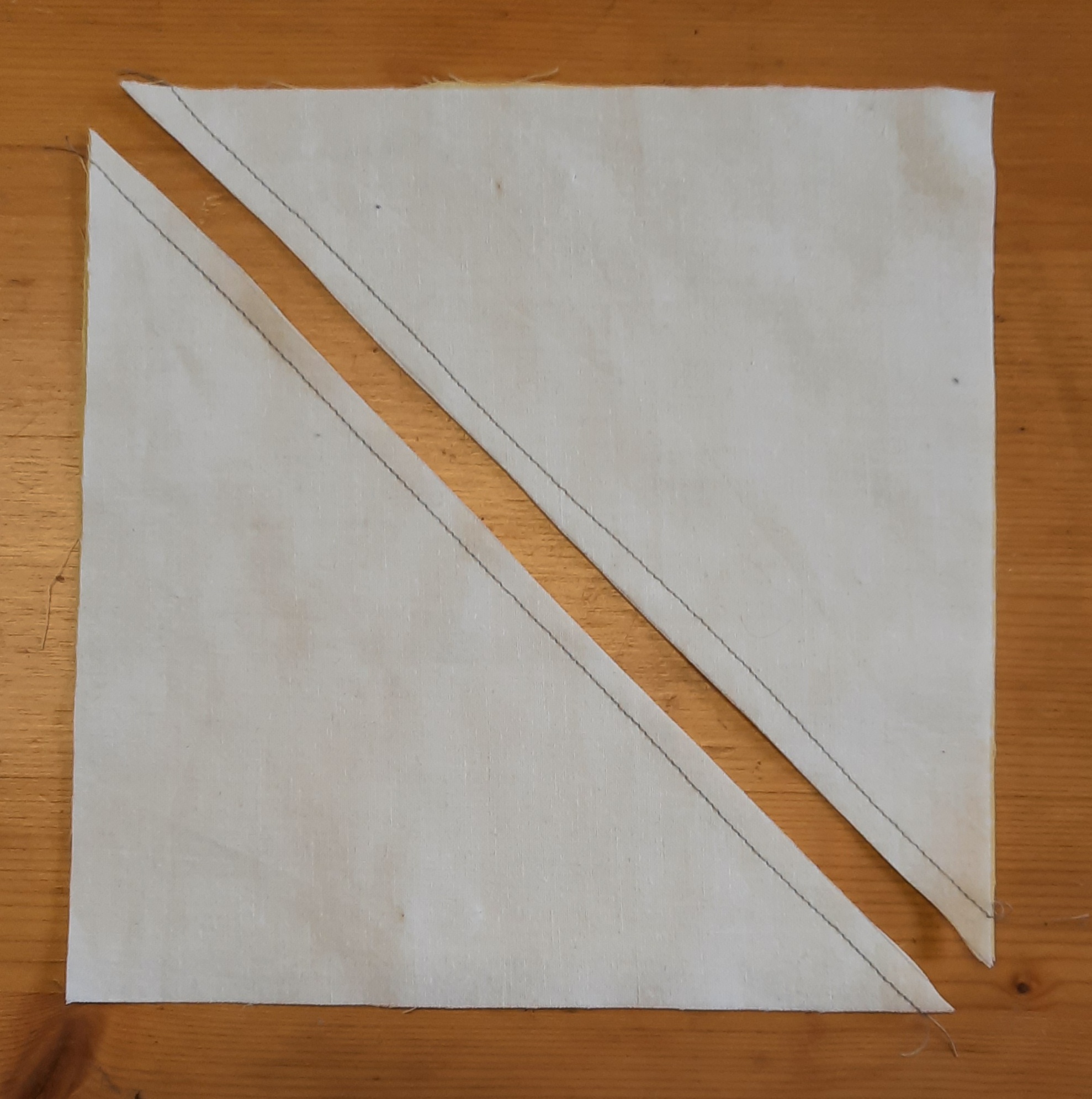 Turn the template over and cut four pieces of navy fabric using template B as a ‘right-hand triangle’
