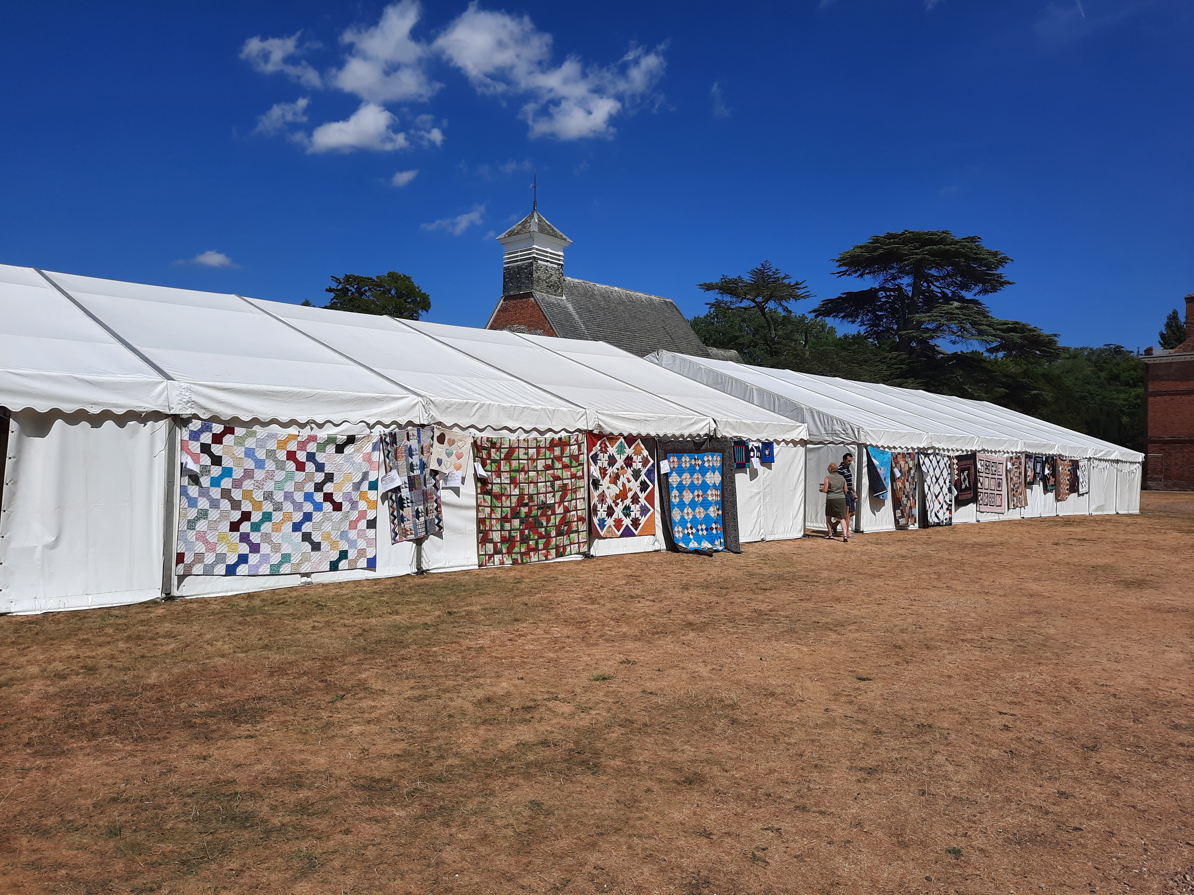 Beautiful quilts for sale (for charitable purposes) were hung outside the marquee on the left, providing a colourful welcome.