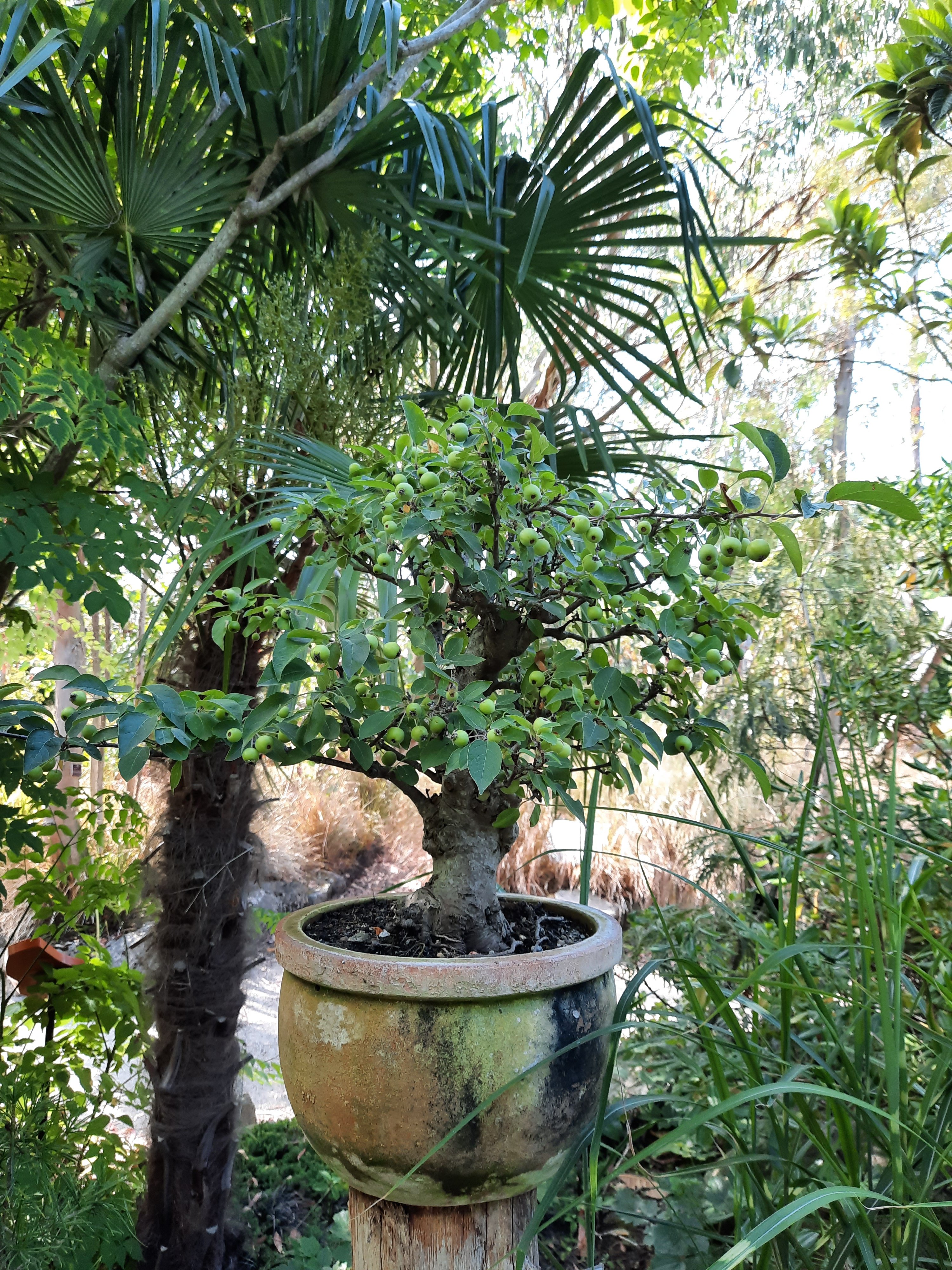 I will include just one gem – this is a miniature (bonsai) Japanese crab-apple tree in a glazed pot on a wooden stand, in the ‘Japan’ section of the garden.