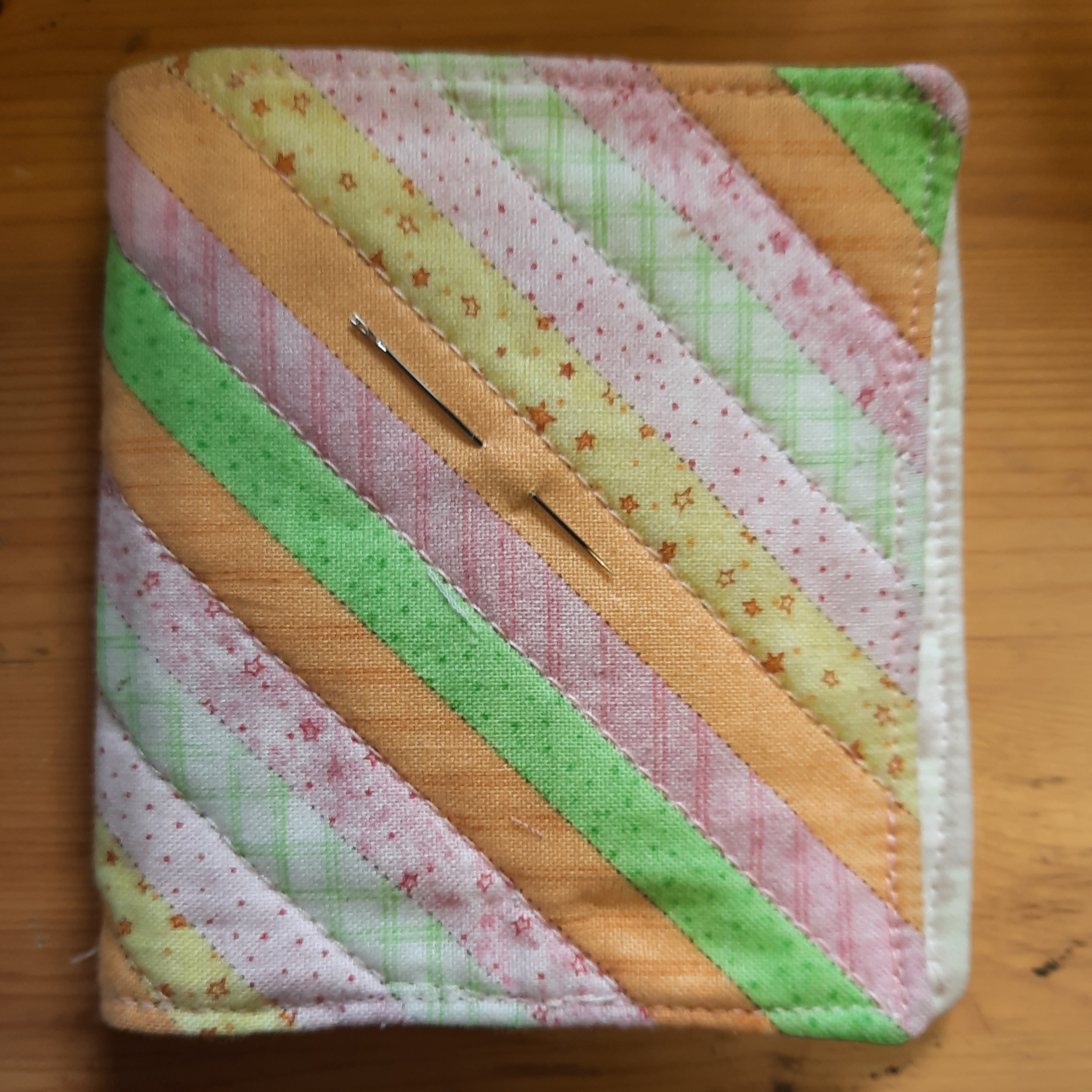 Why it is useful: once you have made your binding for a quilt, you can tape one end to the tin with masking tape. Then wind the binding round the tin. Start stitching the binding on from the loose end and let the binding gradually unwind from the tin, held in your lap. This stops the binding getting into tangles.
