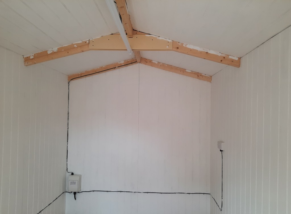 An electrician comes in to run a new cable from the house and install the electrics in the studio – power-points and an overhead light.