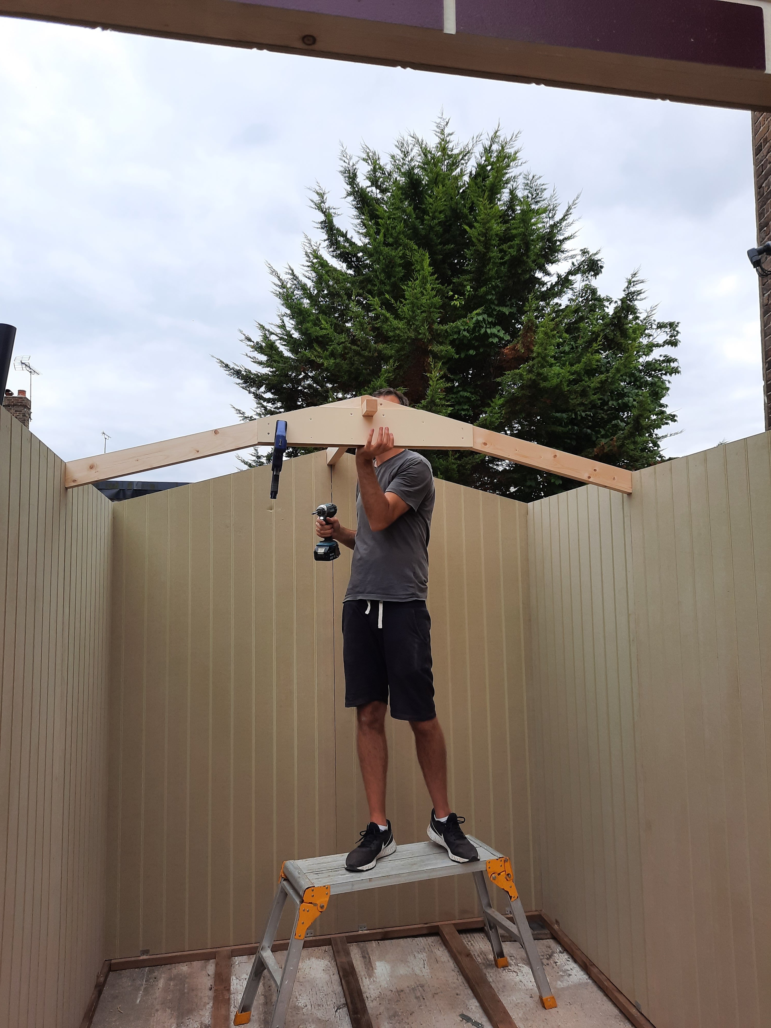 The last left-hand panel is in and the final panel (the left back) is being linked to the right-hand panel.