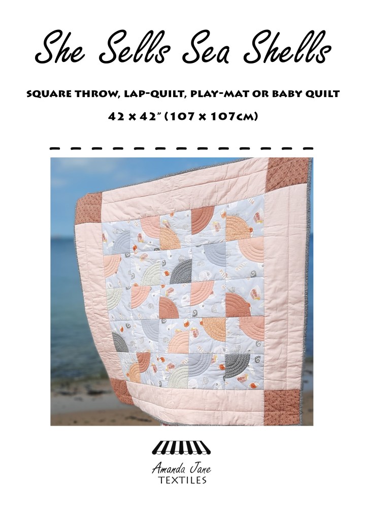 There is also a pretty quilt pattern called ‘She Sells Seashells’ for a square throw which uses the ‘Seashells’ fabric. Get the pattern here