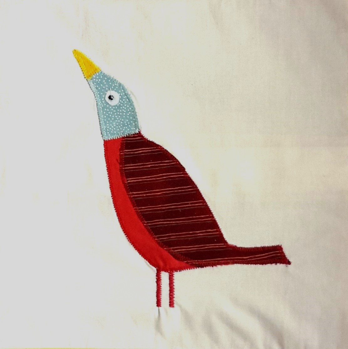 This is a machine appliqué class featuring this charming, yet quirky, bird. You will be provided with colourful fabrics to cut out and stitch down your own QUIRKY BIRD using machine appliqué techniques. This gives you the central panel for a cushion cover. Leave the workshop with additional fabric and full instructions for making up the cushion cover at home.