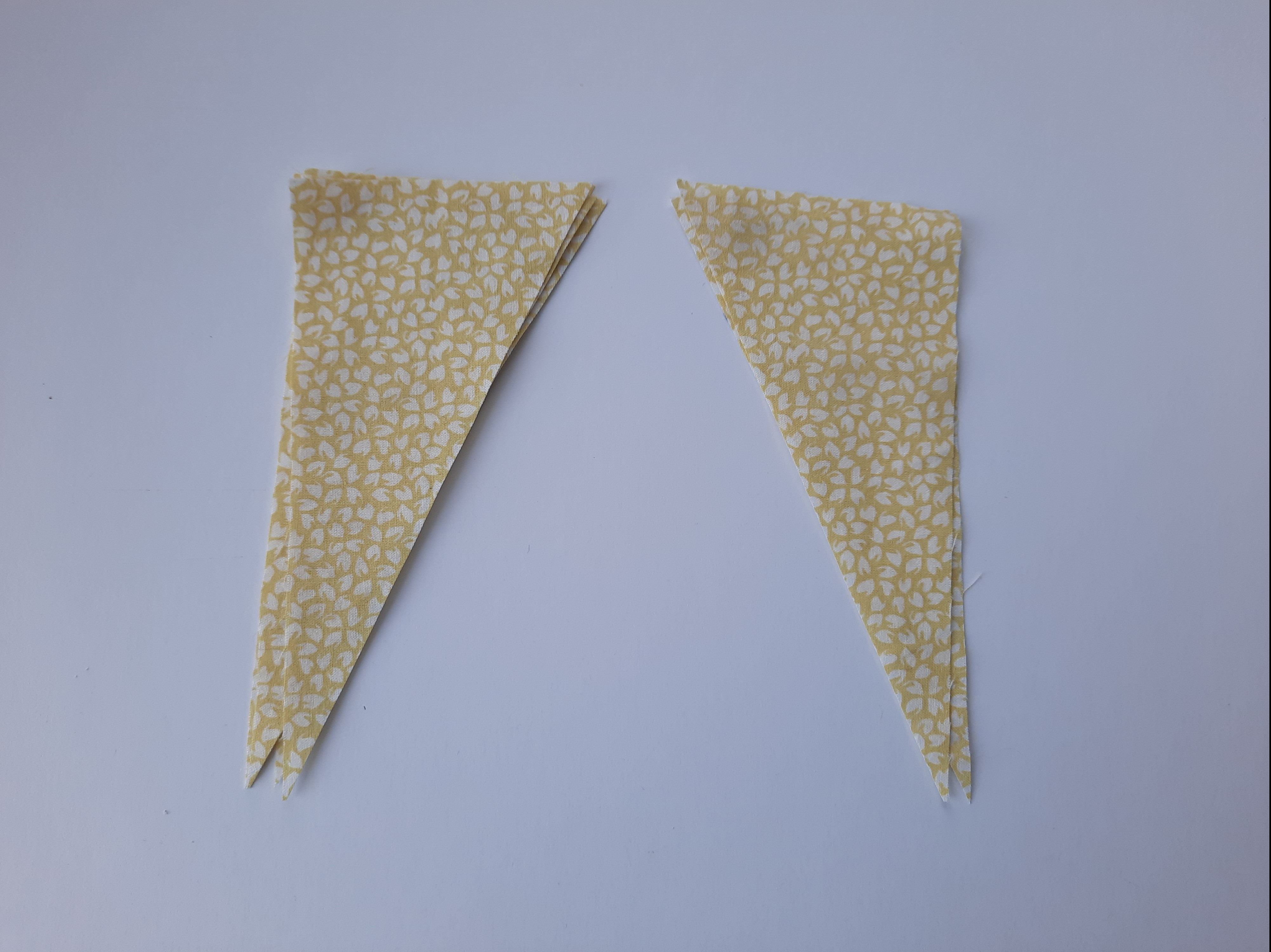 from the pale yellow print fabric, cut two squares 2⅞ x 2⅞”