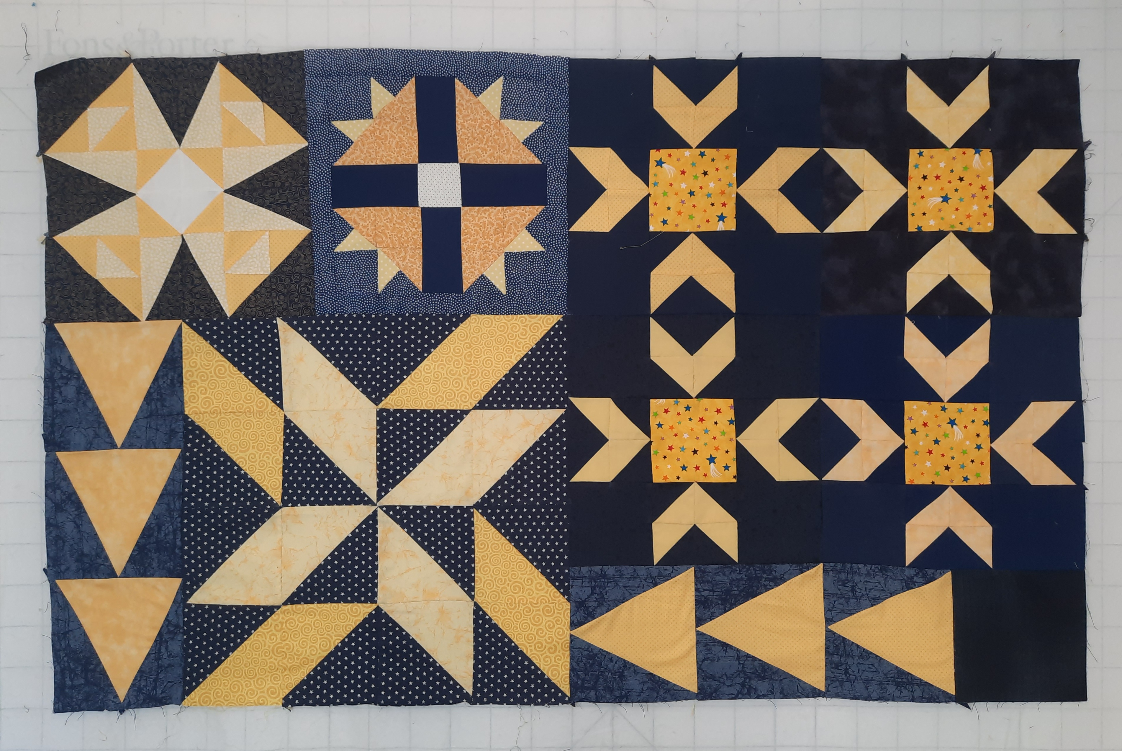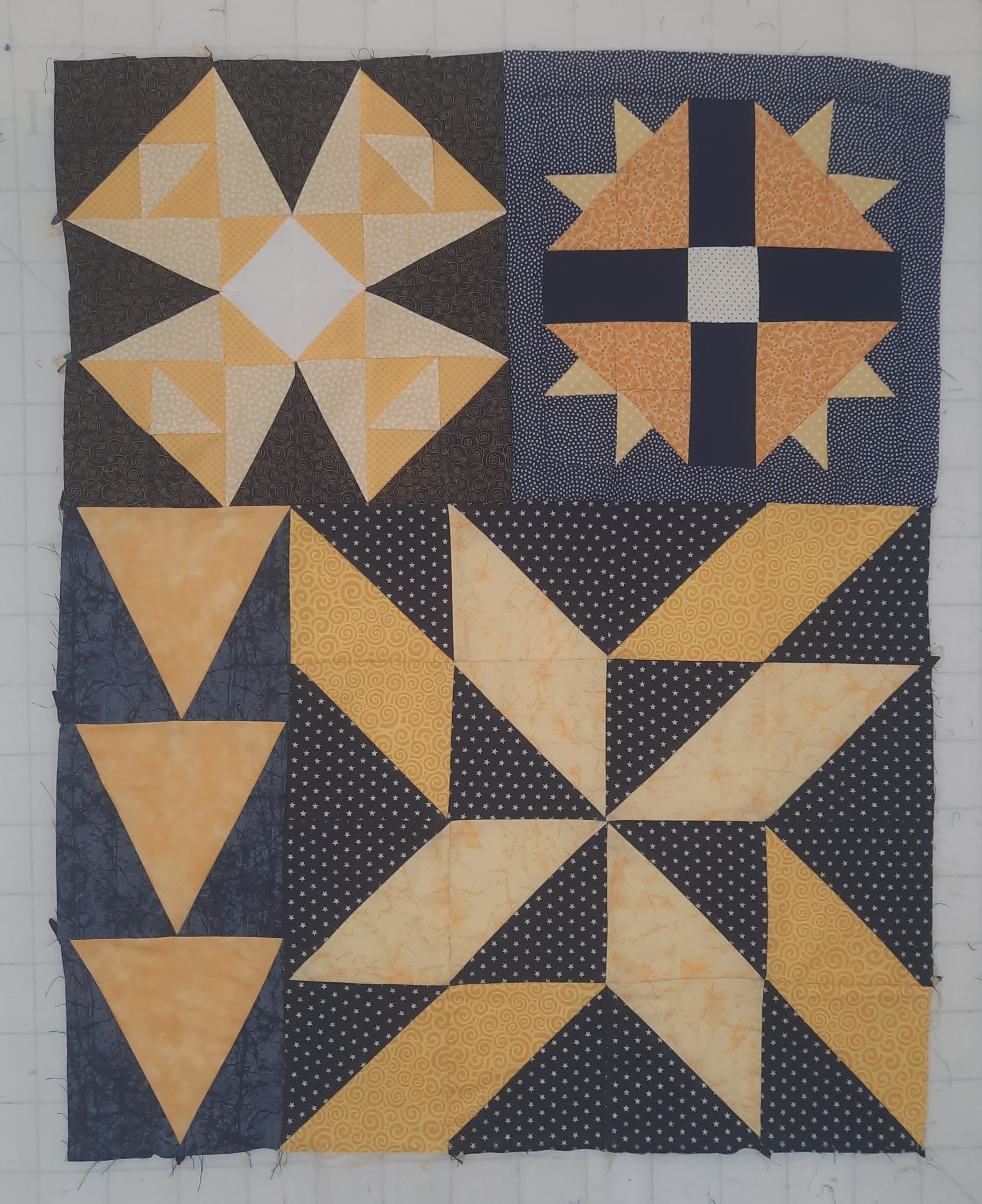 11 Sew the two November blocks together to make a row. Sew the remaining two November blocks to make a row. Sew the two rows together.