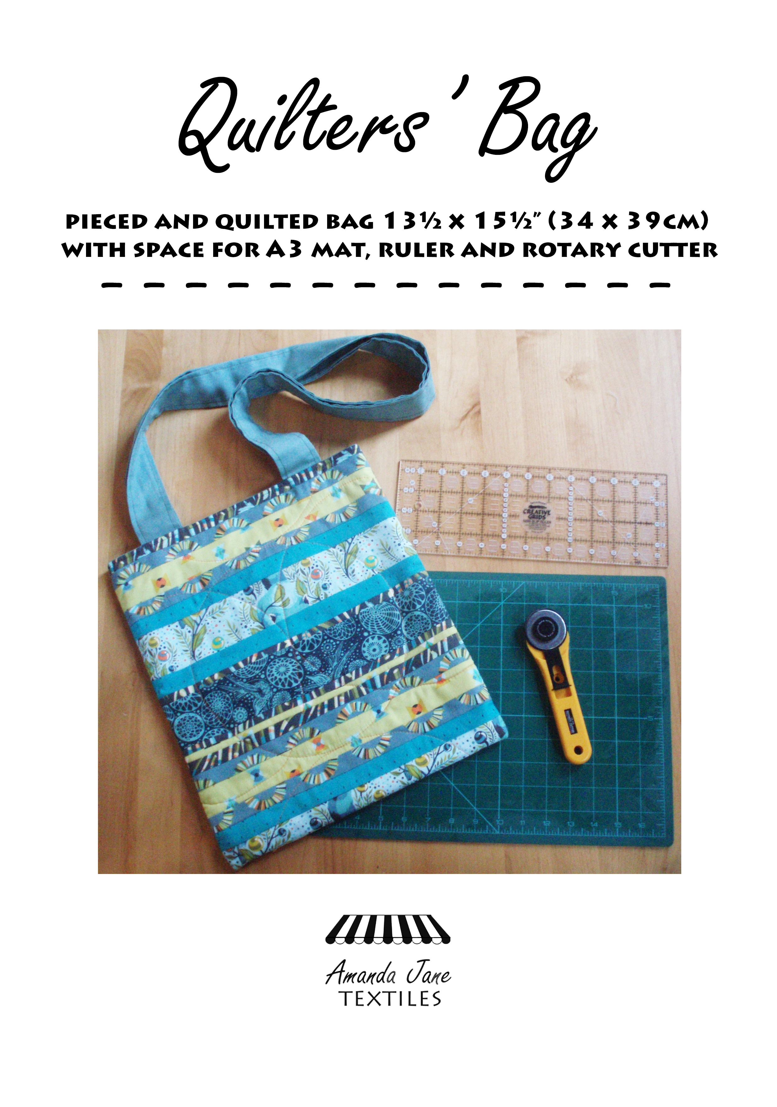 This bag is designed to carry an A4 cutting mat, rotary cutter and a ruler – just right for going to a quilt group or class. It is a fun project and it would make a great gift for a quilting friend. Get the pattern here