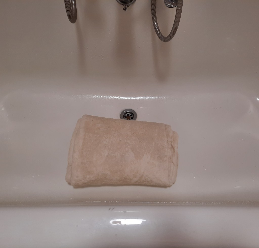 At the end of that time, I let the water out of the bath and then gently fold the the piece again and press out the water.