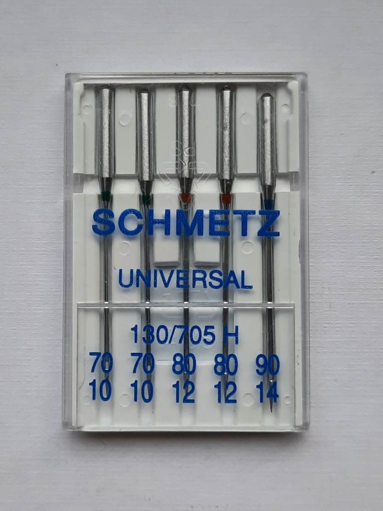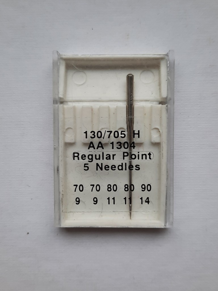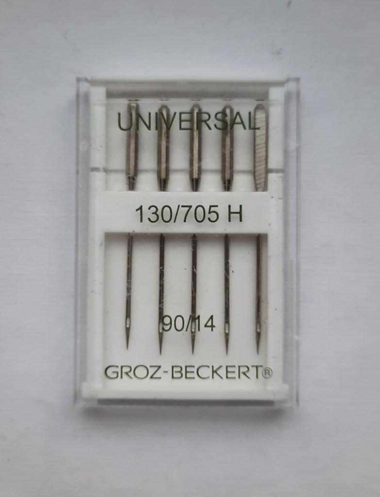 There is a variety of needles on offer, so where should you begin when you are trying to choose a needle for sewing? Well for general sewing it is sensible to choose a ‘universal’ needle (as seen below), which just indicates that it is suitable for everyday sewing, rather than for a specialist use. You can see that various numbers are printed on this box indicating the size of the needles in the packet: 70, 80 and 90. So let’s look at some of the needles in my collection.