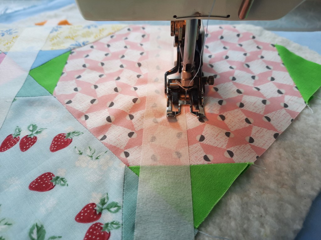 When using this method on a large quilt, I divide the tape into sections with a small gap in between, so as not to get entangled in long stretches of tape!