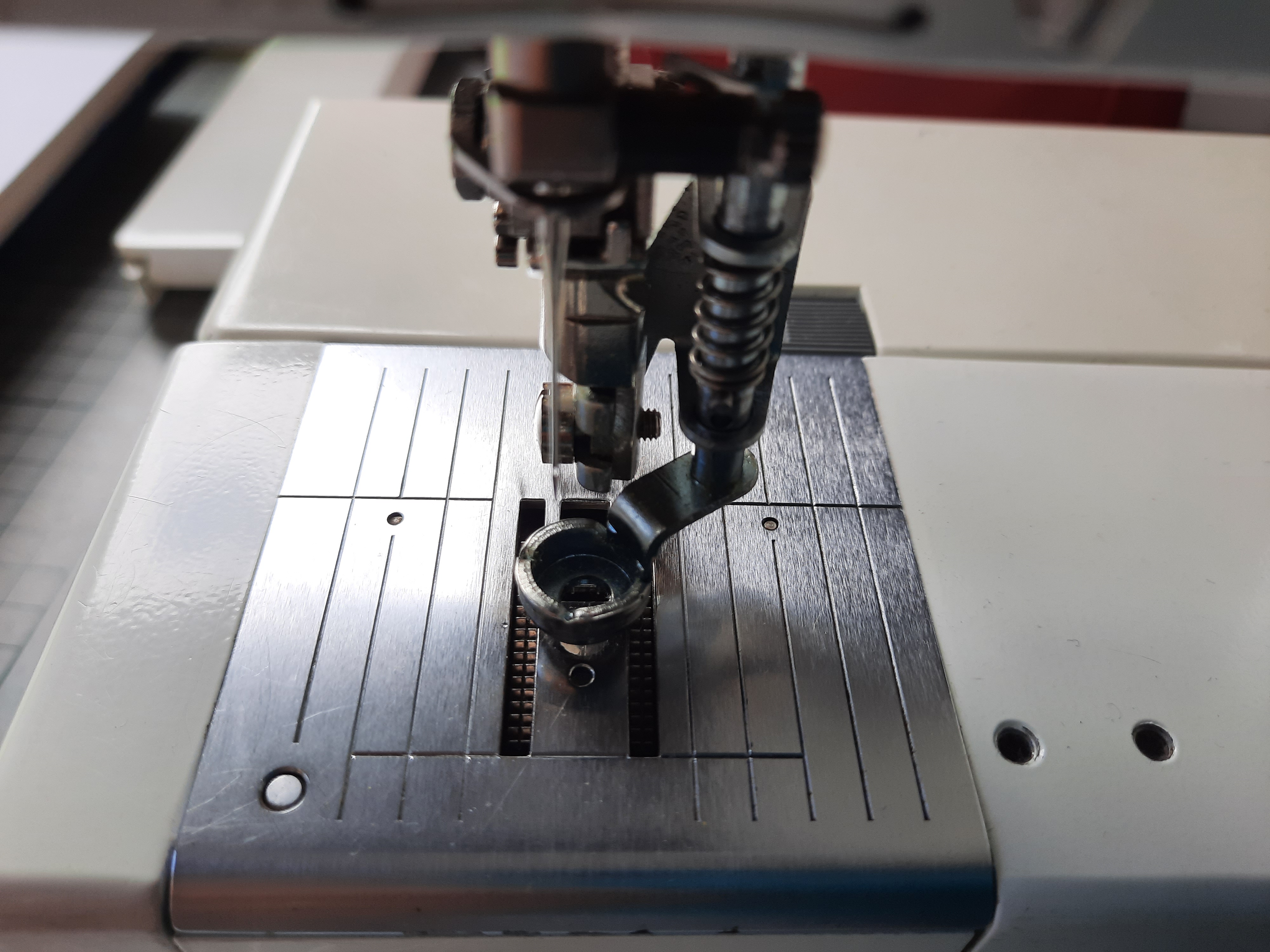 All the effort was worth it for the excellent demonstration and teaching session by Shirley of Parr’s Free Motion Rulers. I was able to borrow a foot for my Bernina which is specially adapted by Parrs. It looks like this when installed on my (much-travelled) machine: