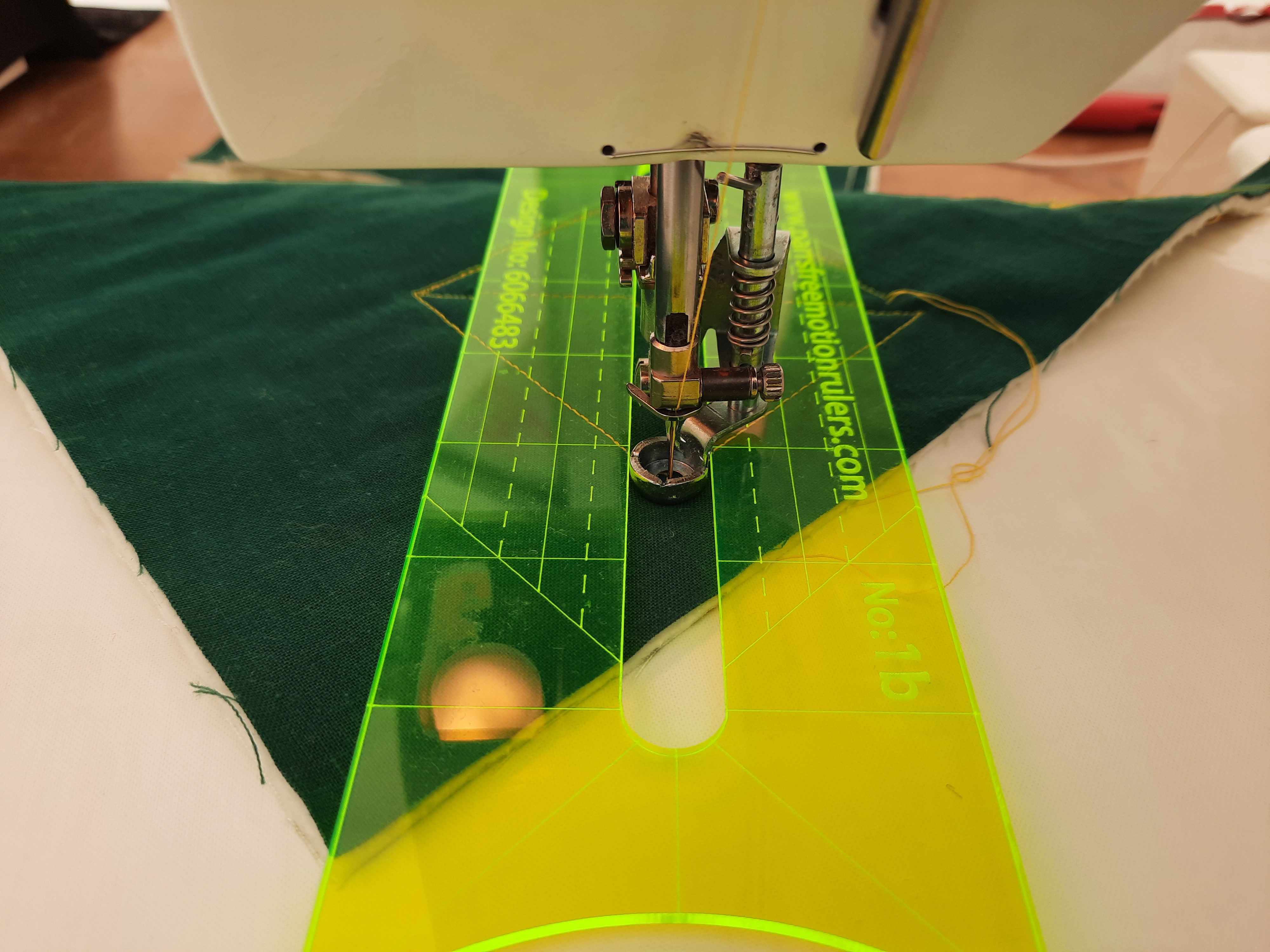 Sample made in the workshop from Parrs Rulers, Lullingstone Quilt Show 2023. photo by Amanda Jane Ogden