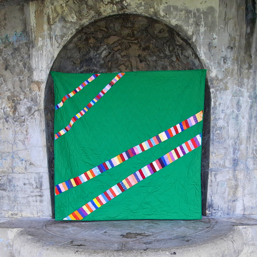 This quilt, ‘Modern Grey’ by Di Hawkins, was made from a pattern by Jackie White in ‘Make Modern’ magazine*. I loved the effect created by the textural quality of the background fabric in contrast to the modern prints in the pieced shapes.